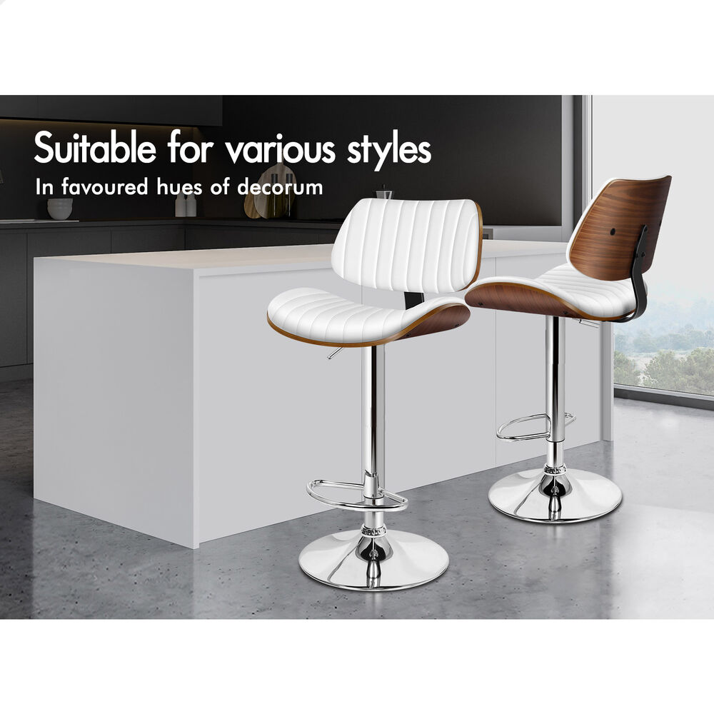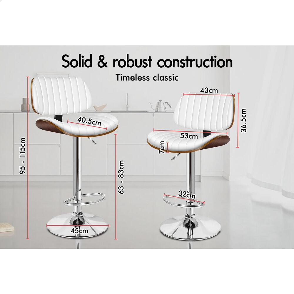 ALFORDSON 1x Bar Stool Kitchen Swivel Chair Wooden Leather Gas Lift White