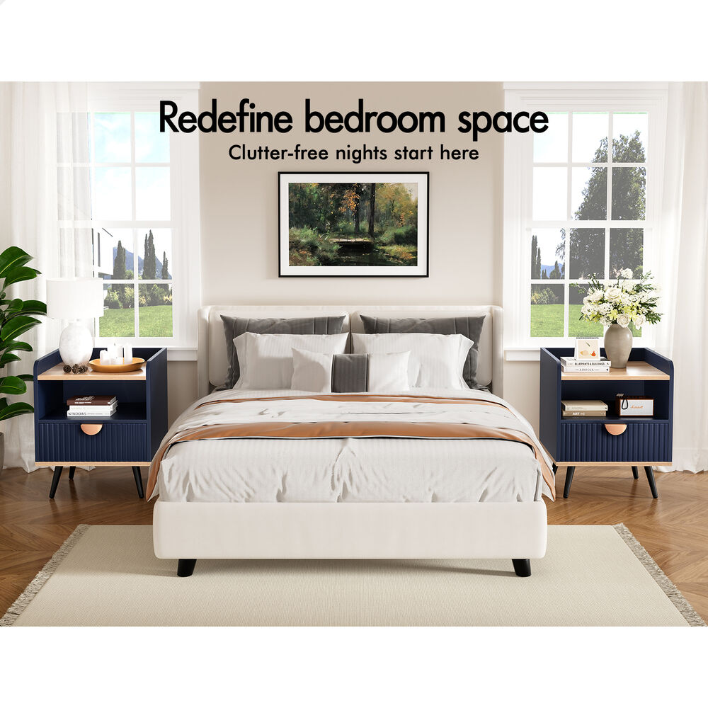 ALFORDSON 2× Bedside Table 1 Drawer Nightstand Side Storage Shelf Blue