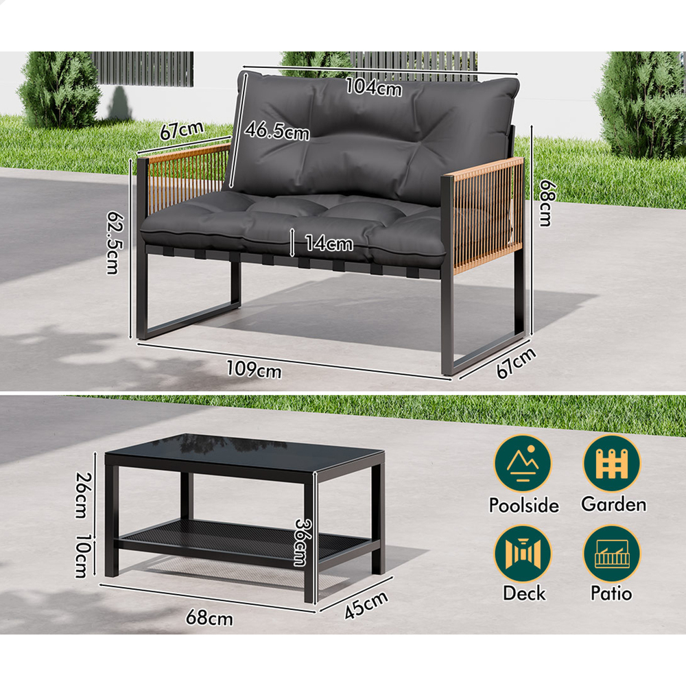 Spacious storage coffee table - Our coffee table in the set features unique storage space. With double-deck and 22cm elevated storage space, it can be used to store books, pillows, or other items you may want to keep within reach while relaxing outside. Features with tempered glass table top, it is durable and safe.