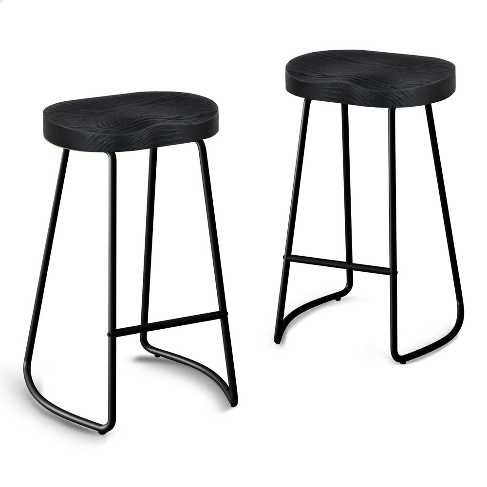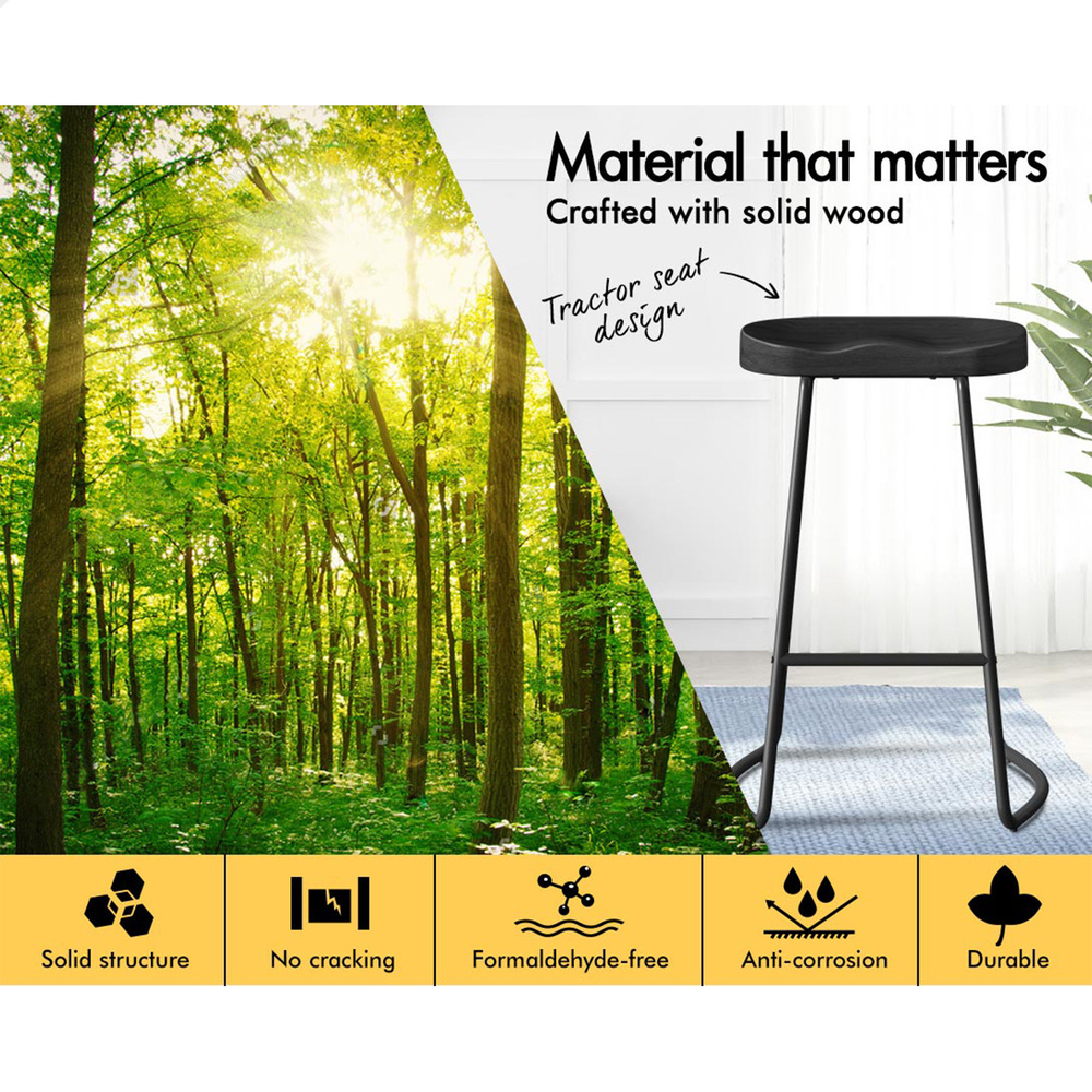 ALFORDSON 2x Bar Stools 75cm Tractor Kitchen Wooden Vintage Chair Black