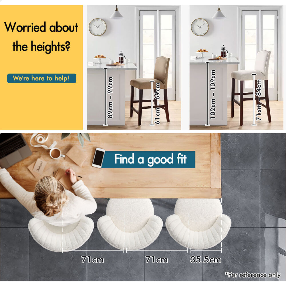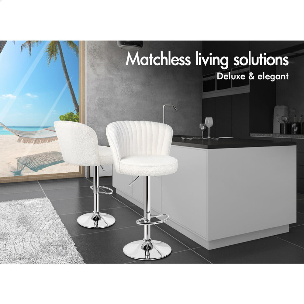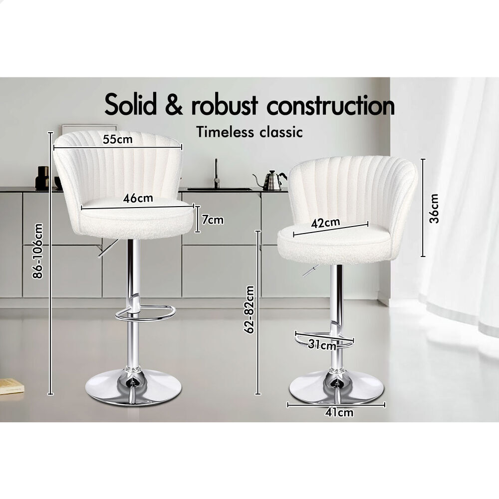 ALFORDSON 2x Bar Stools Gas Lift Boucle Bar Chairs Kitchen Swivel Dylan White