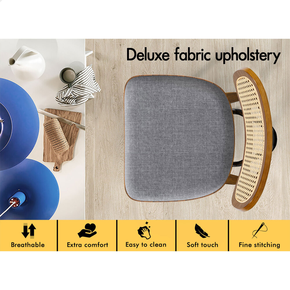 ALFORDSON 2x Bar Stools Kitchen Vintage Fabric Seat Rattan Chair Wooden Grey