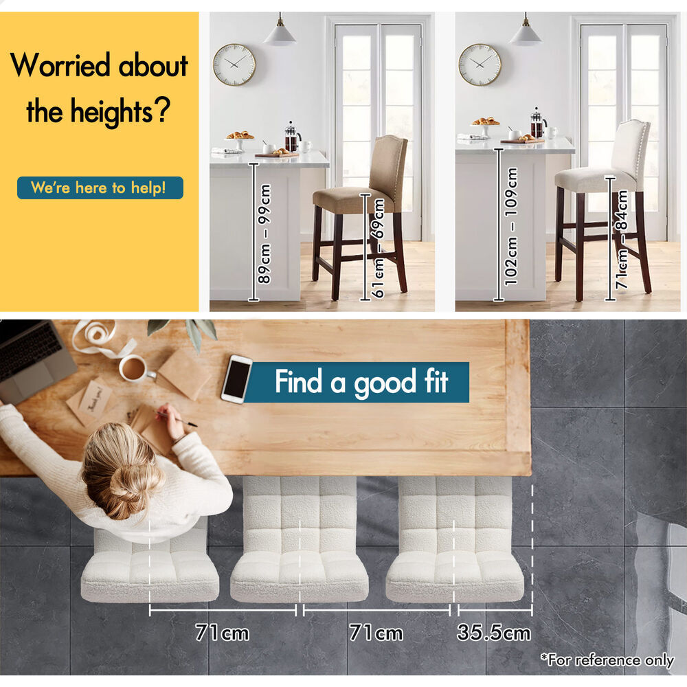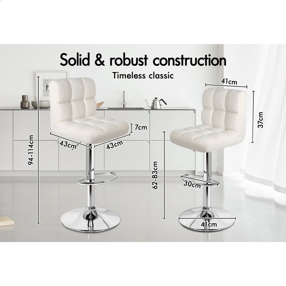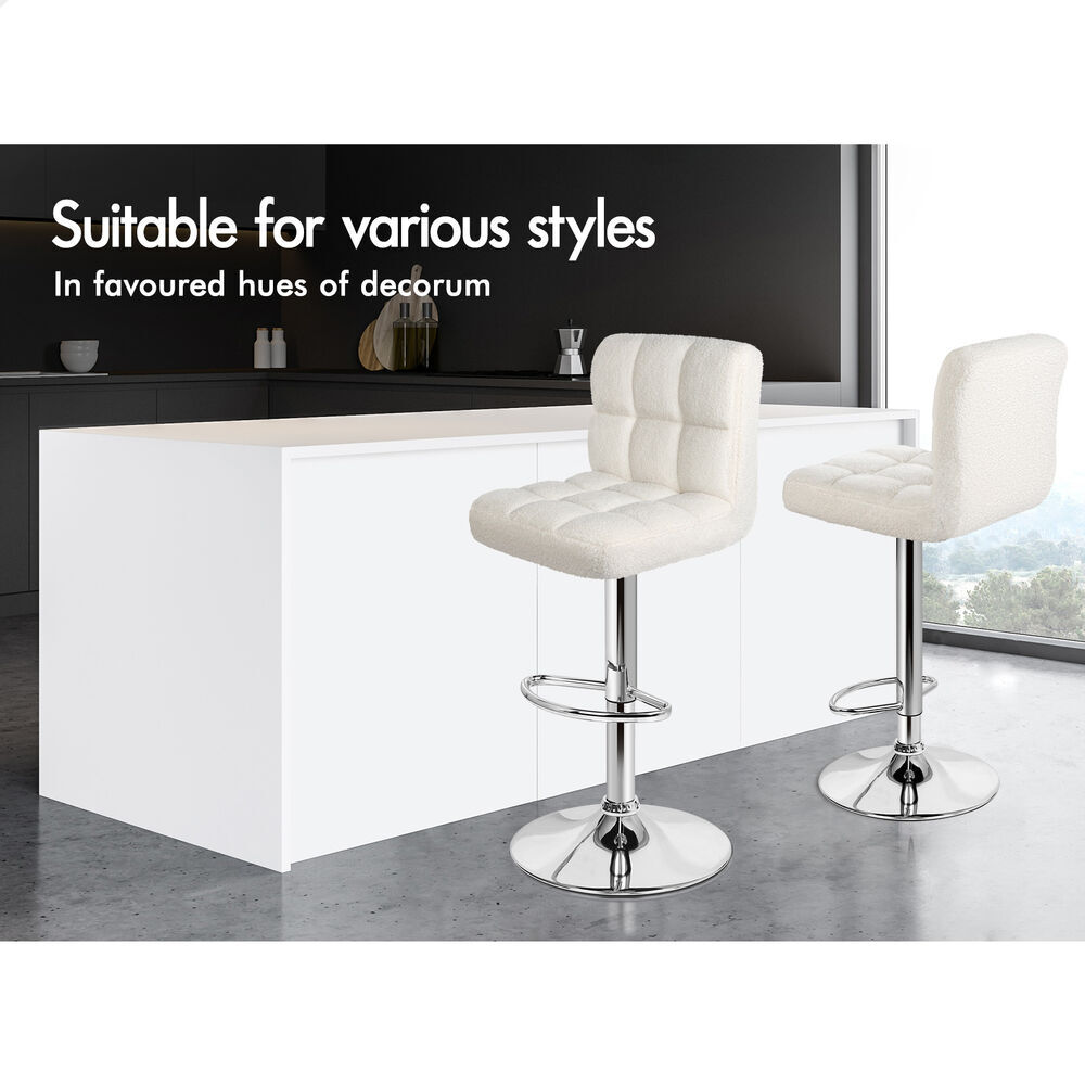 ALFORDSON 2x Bar Stools Ralph Kitchen Swivel Chair Boucle Gas Lift White