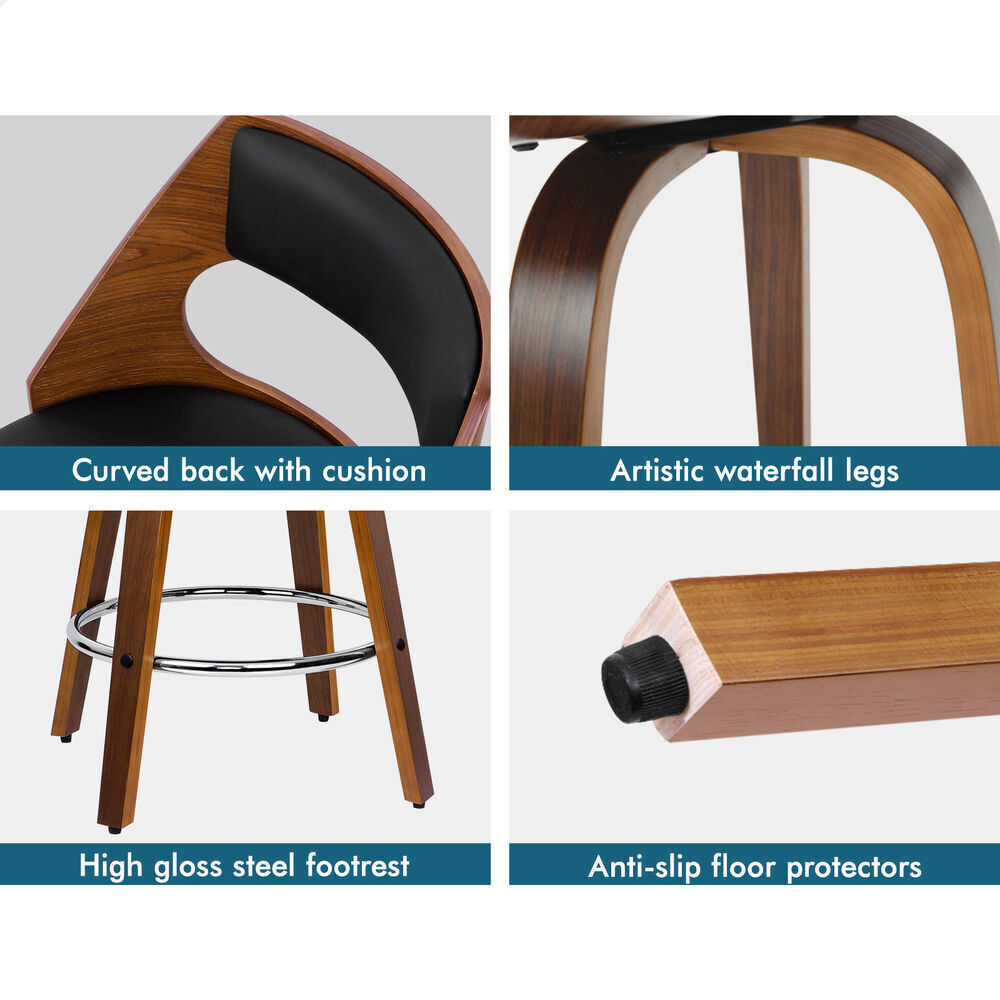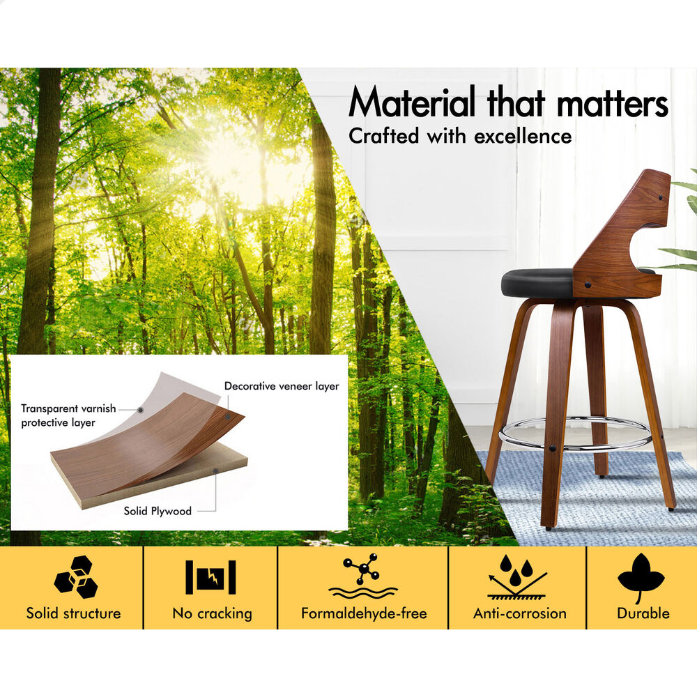 ALFORDSON 2x Bar Stools Swivel Chairs Kitchen Wooden Dining Chair Freddy BLACK