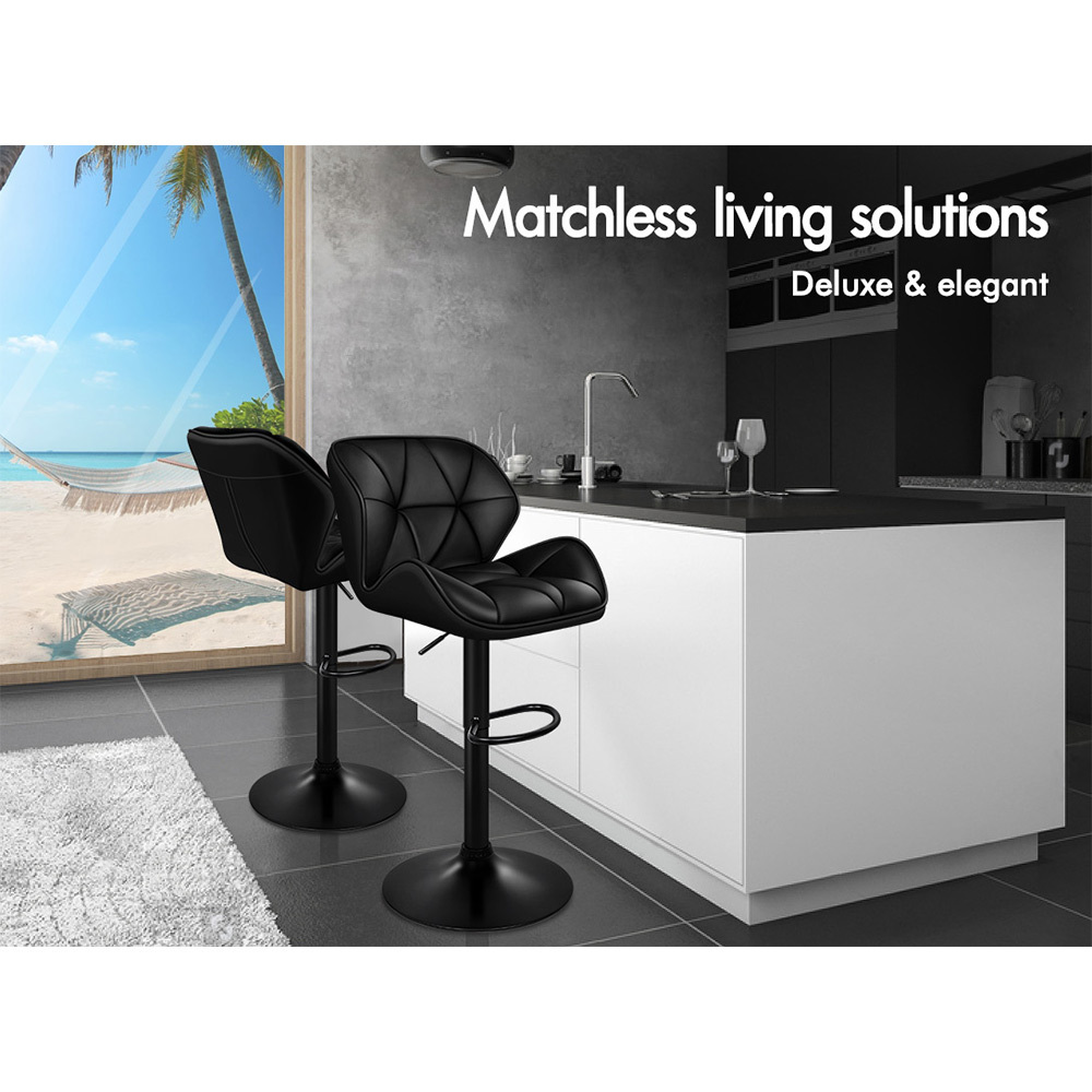 ALFORDSON 2x Bar Stools Willa Kitchen Gas Lift Swivel Chair Leather BLACK
