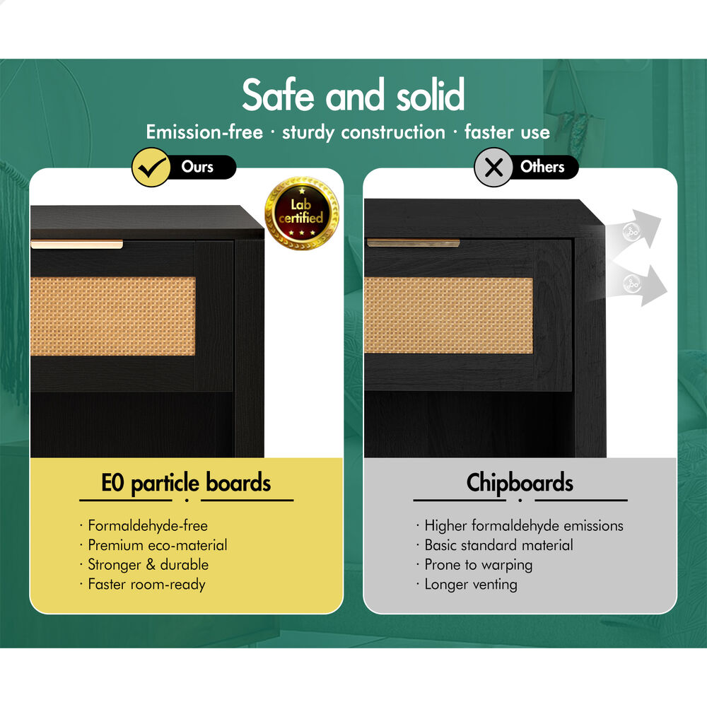 ALFORDSON 2x Bedside Table Nightstand Side End 1 Drawer Storage Shelf Black