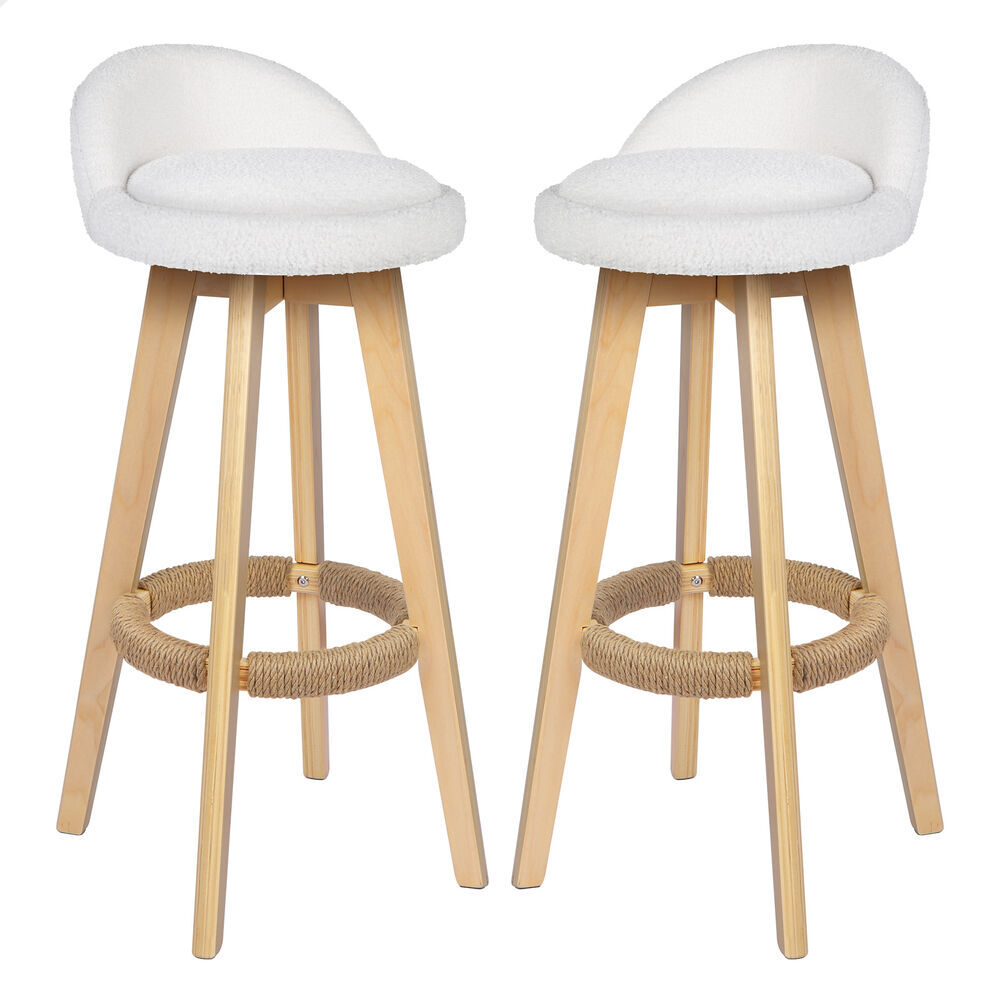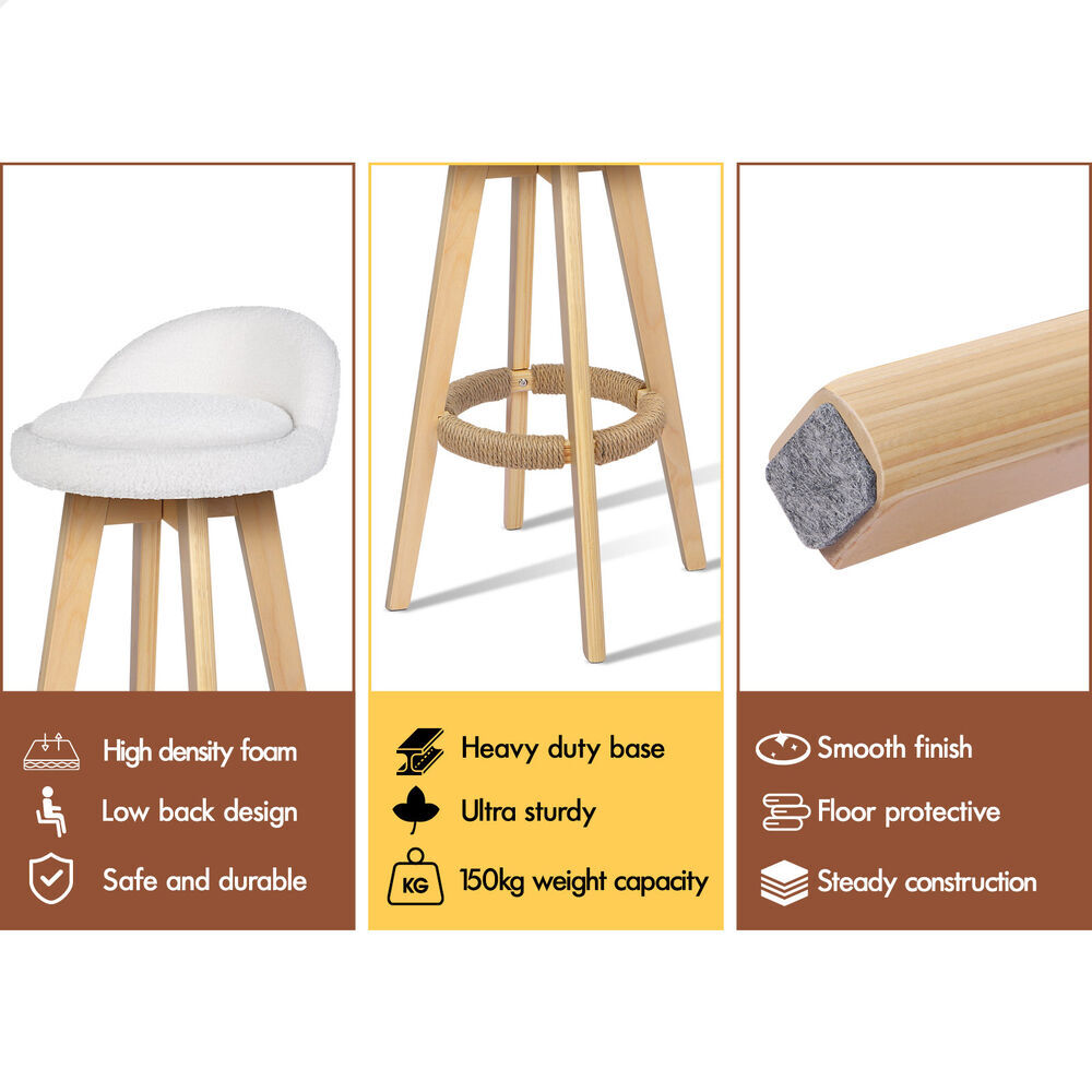 ALFORDSON 2x Kitchen Bar Stools Liam Wooden Swivel Bar Stool Chairs Boucle White