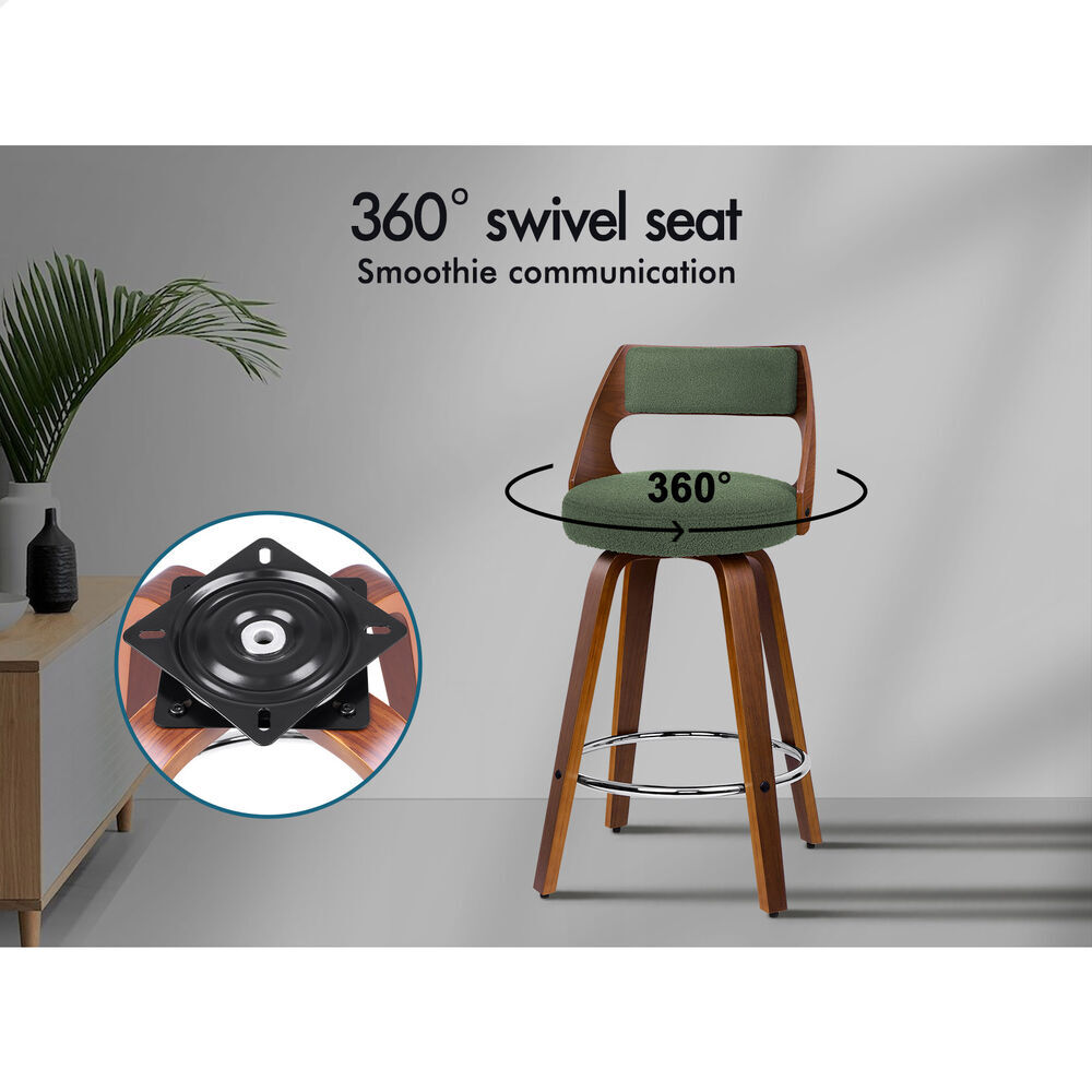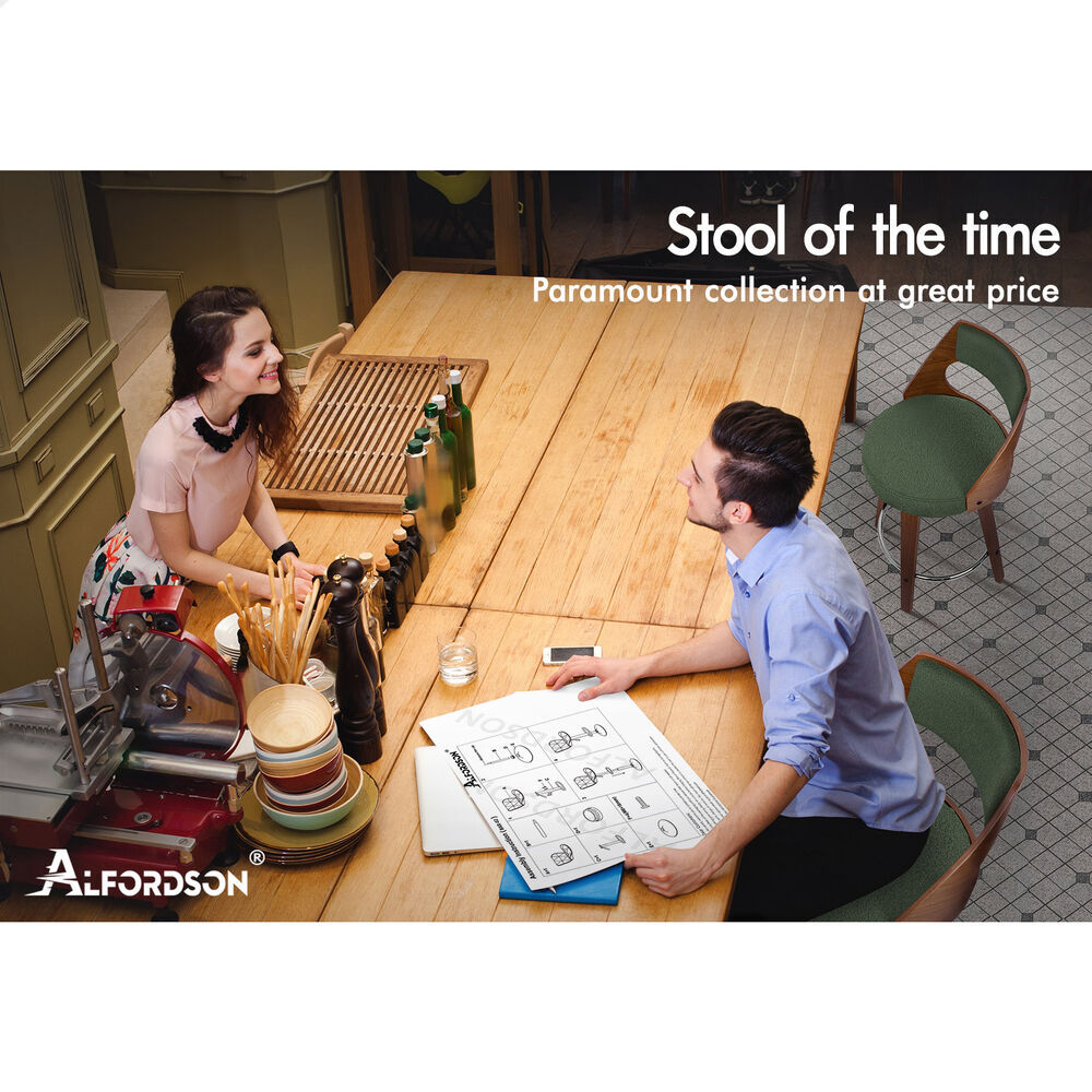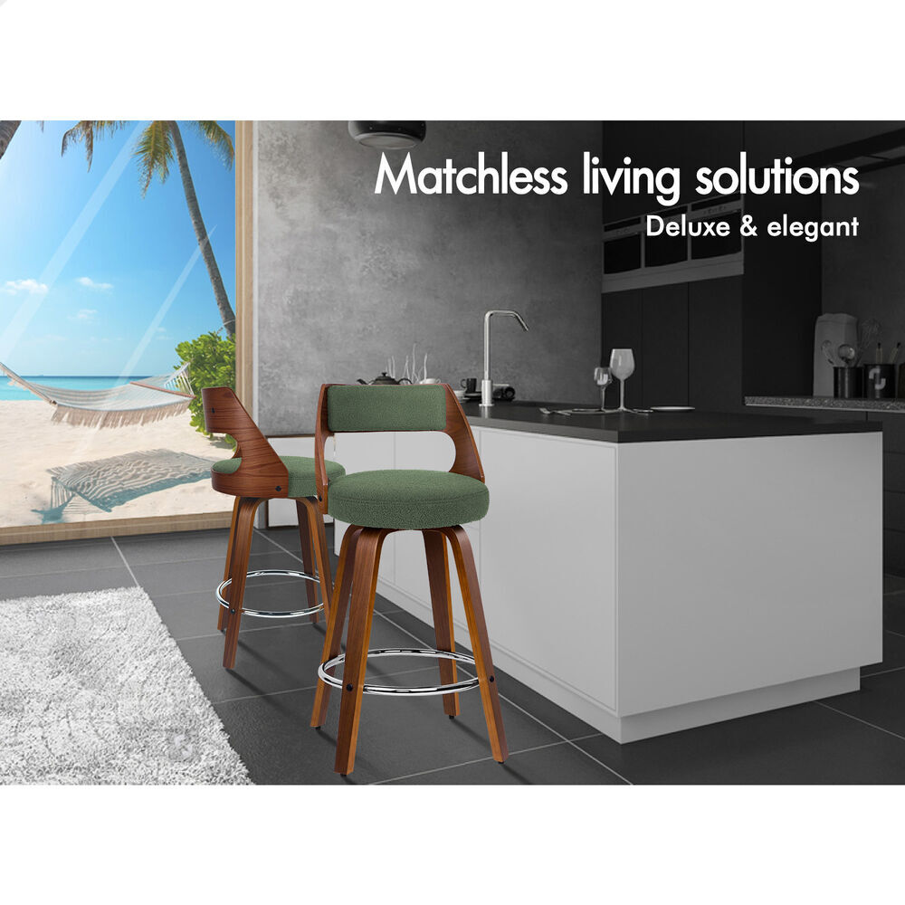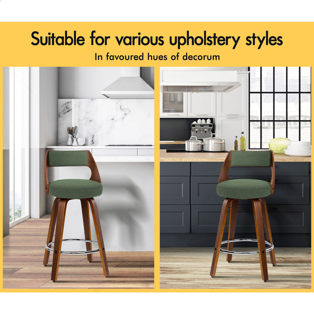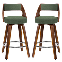 ALFORDSON 2x Swivel Bar Stools 65cm Kitchen Wooden Dining Chair Boucle Green