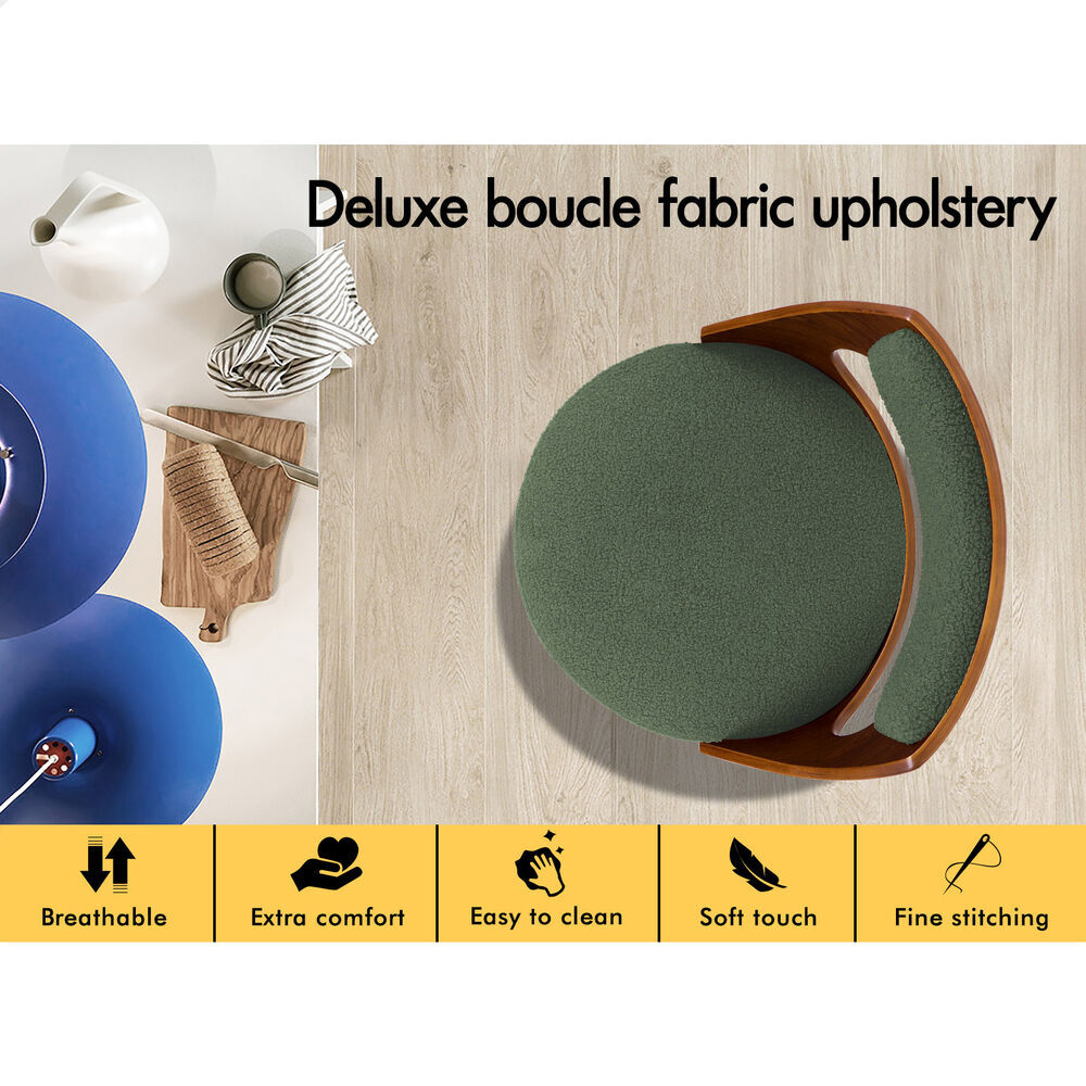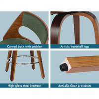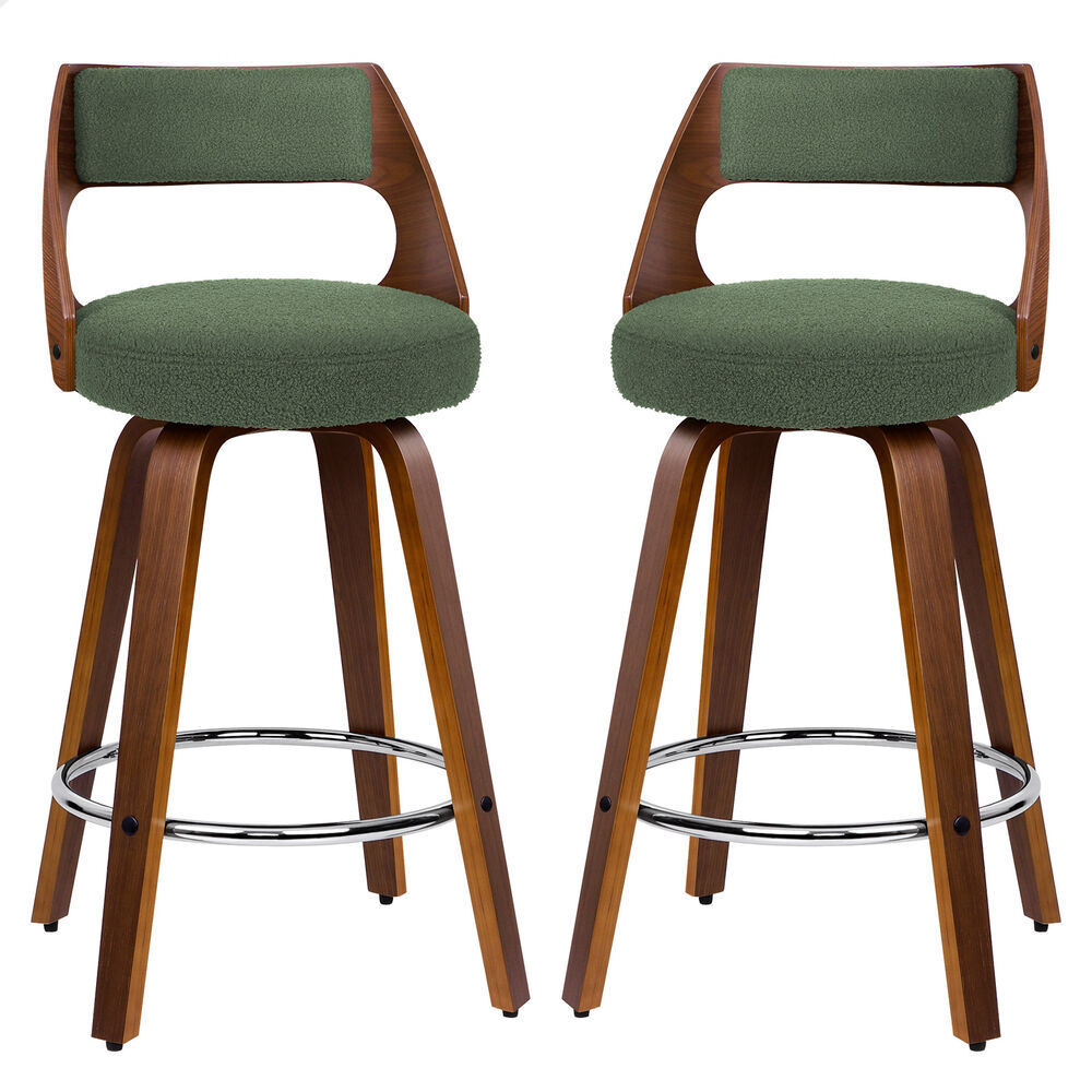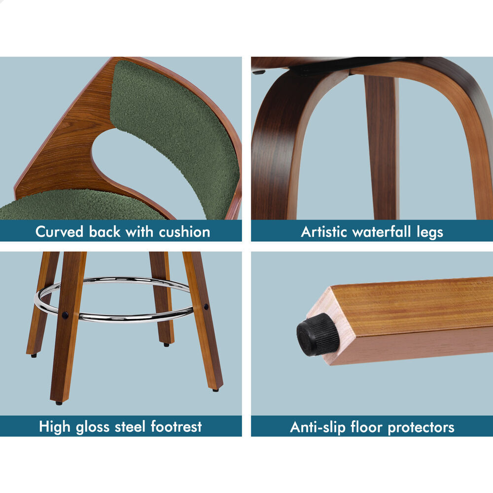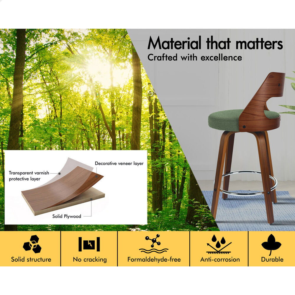 ALFORDSON 2x Swivel Bar Stools 65cm Kitchen Wooden Dining Chair Boucle Green