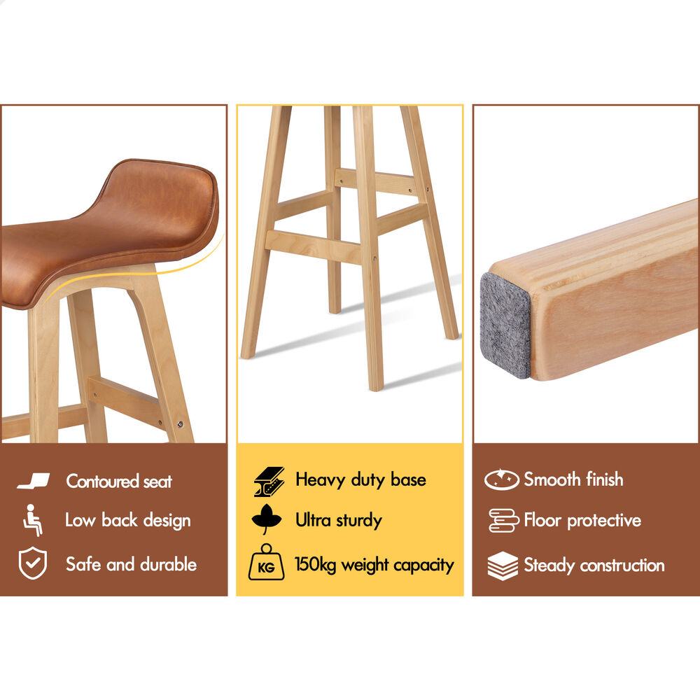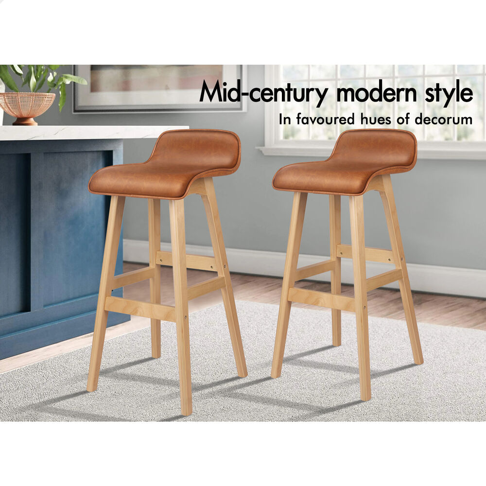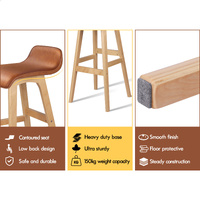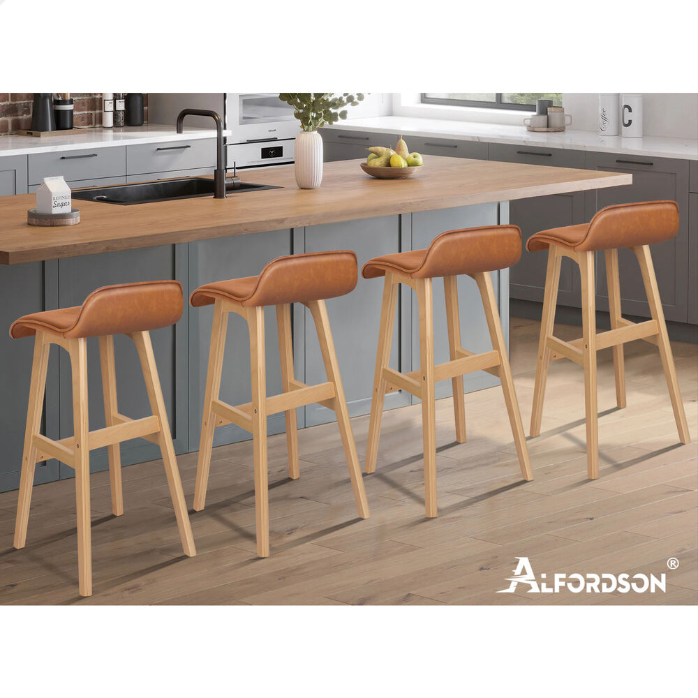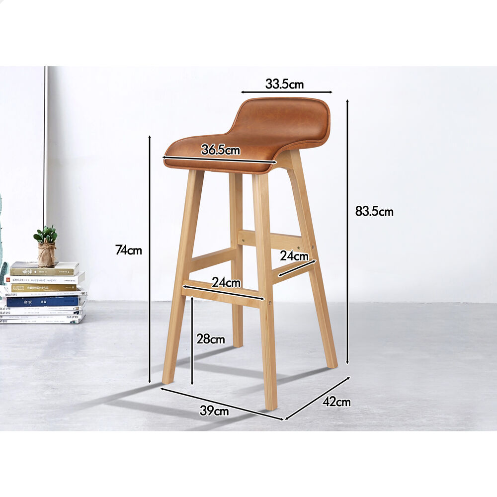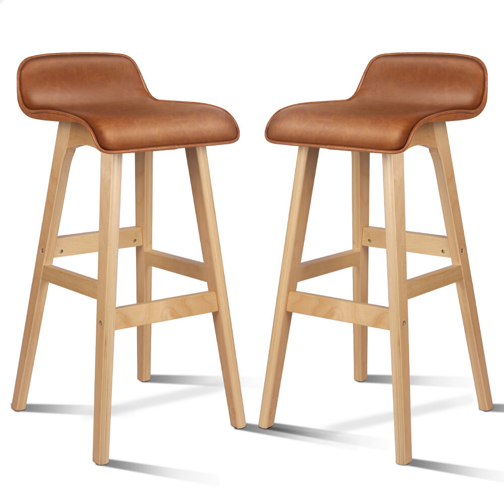 ALFORDSON 2x Wooden Bar Stools 74cm Kitchen Dining Chair Leather Samuel Brown