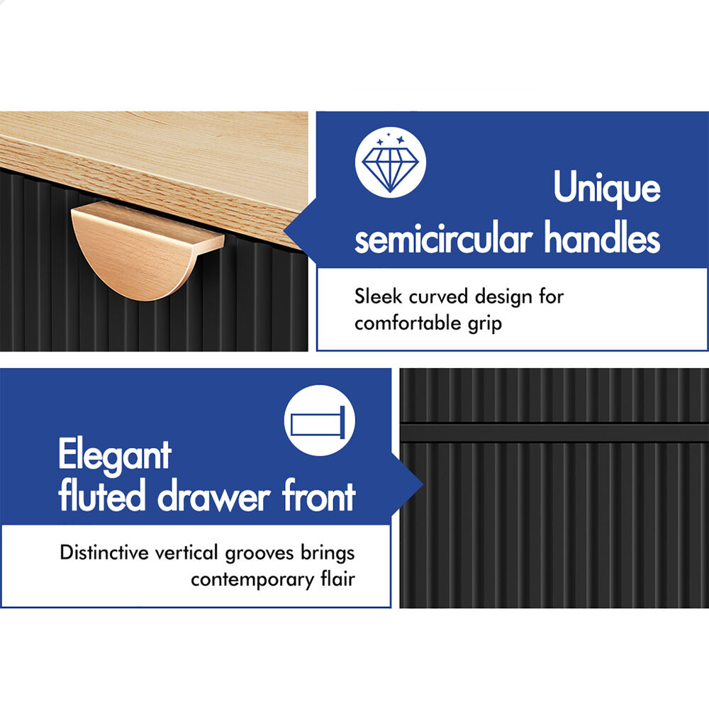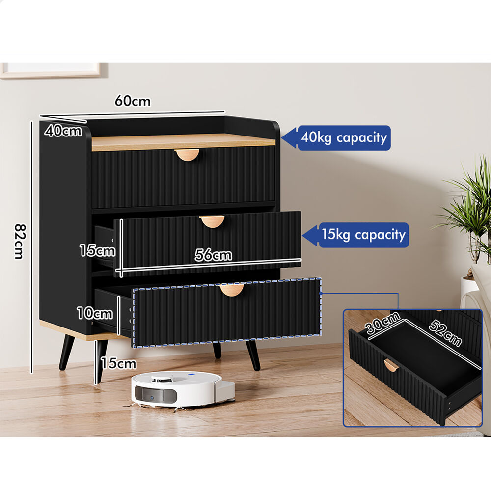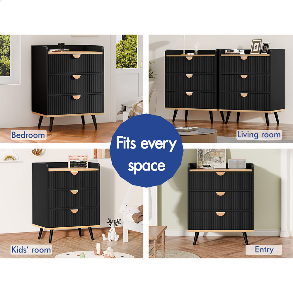 ALFORDSON 3 Chest of Drawers Modern Storage Cabinet Dresser Tallboy Black