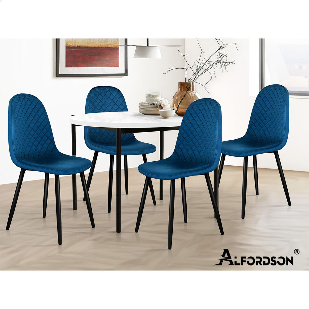 ALFORDSON 4x Dining Chairs Kitchen Lounge Cafe Diamond Stitch Retro Velvet Blue