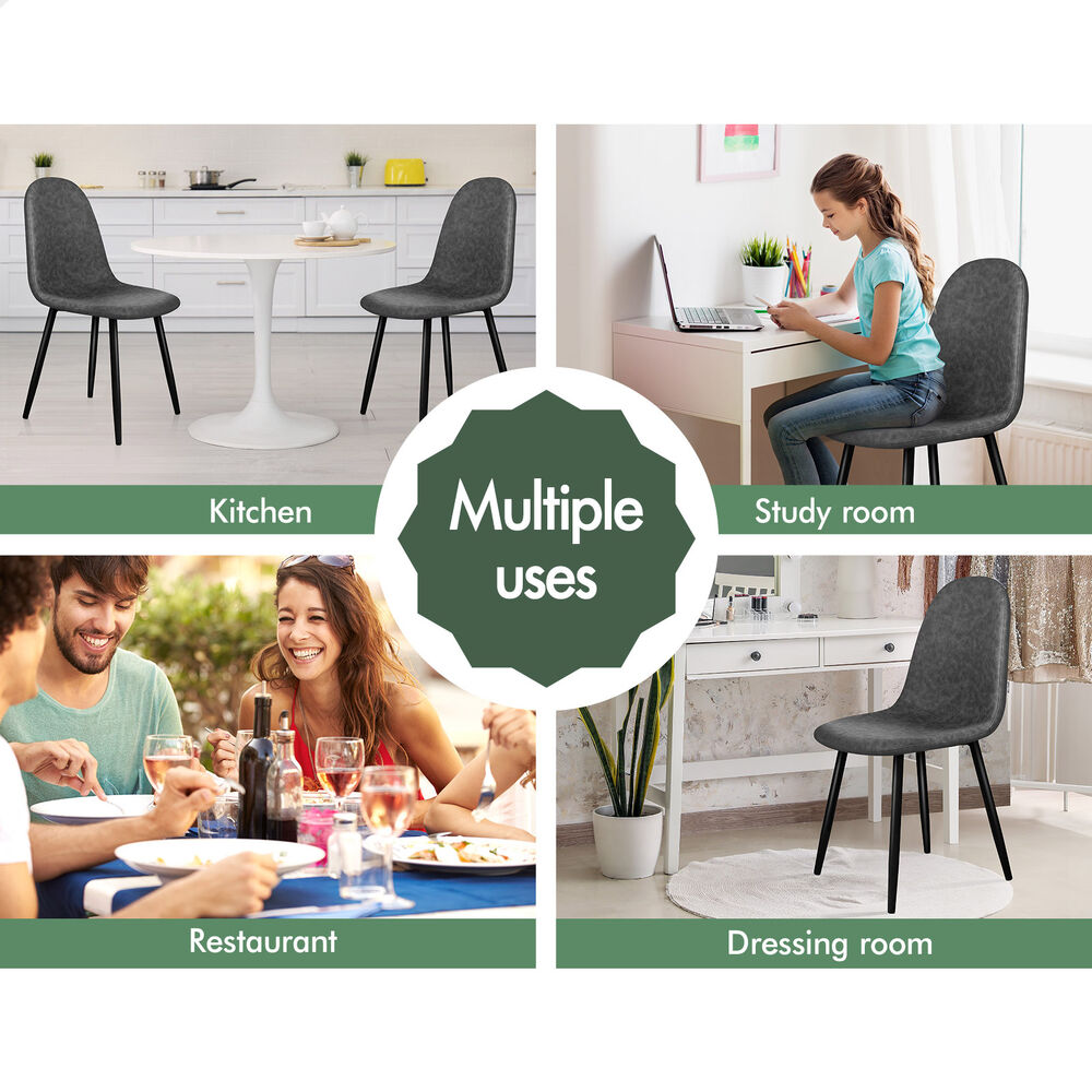 ALFORDSON 4x Dining Chairs Kitchen Lounge Cafe Seat Retro PU Faux Leather Grey