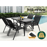 ALFORDSON 5PCS Outdoor Dining Set Table and Chairs Black