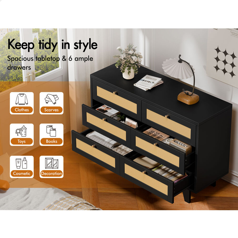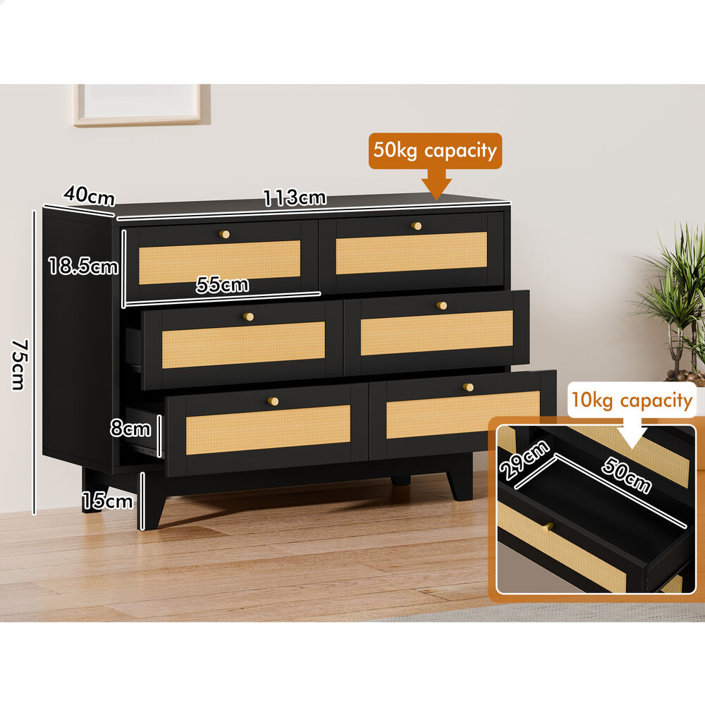 ALFORDSON 6 Chest of Drawers Rattan Storage Cabinet Dresser Tallboy Black