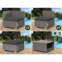ALFORDSON 6 Seater Outdoor Lounge Setting 7PCS Sofa Set Furniture Dark Grey