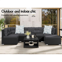 ALFORDSON 6 Seater Outdoor Lounge Setting 7PCS Sofa Set Furniture Patio Black