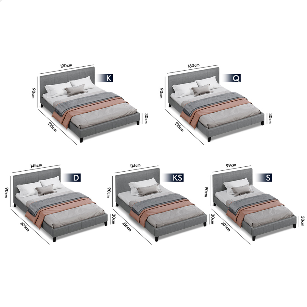 ALFORDSON Bed Frame Double Size Mattress Base Wooden Platform Fabric Grey