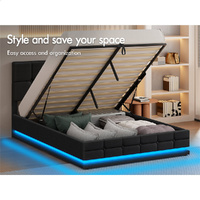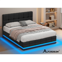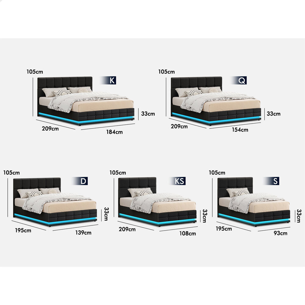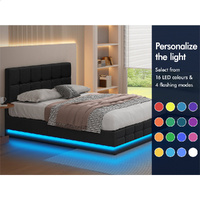 ALFORDSON Bed Frame Double Size Platform RGB LED Gas Lift Base Storage Charcoal