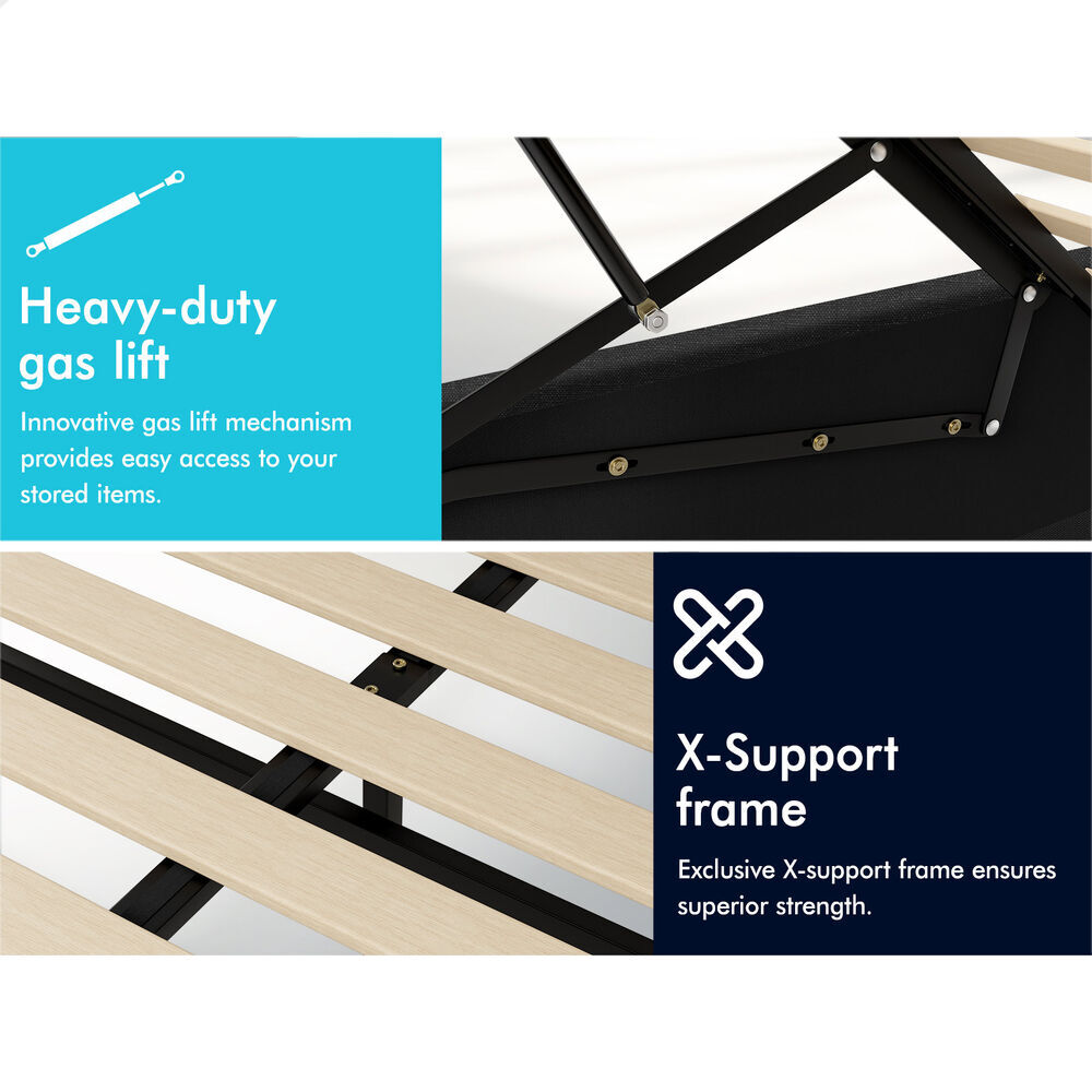Quality counts - Constructed of durable wood slats and reinforced with exclusive X-support frame, this bed frame provides you with full sense of security. The heavy-duty gas lift mechanism allows you to effortlessly raise the mattress platform, providing easy access to the storage compartment. What's more, with adhesive Velcro strips, you can just lay the slats down, without inserting slats one by one at both end caps. Enjoy hassle-free installation!