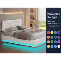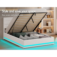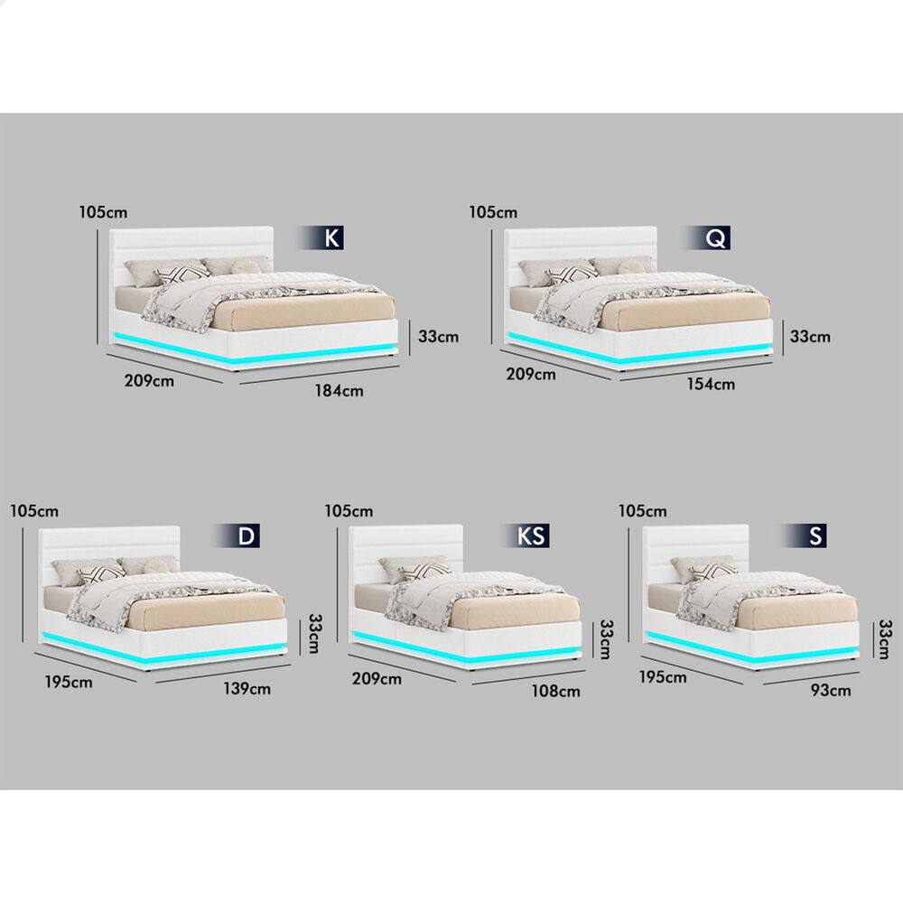 ALFORDSON Bed Frame Double Size Platform RGB LED Gas Lift Base Storage Boucle