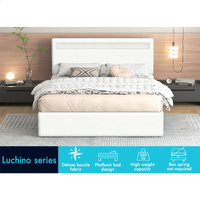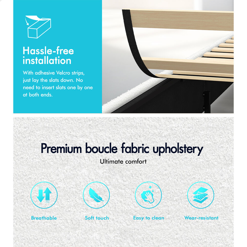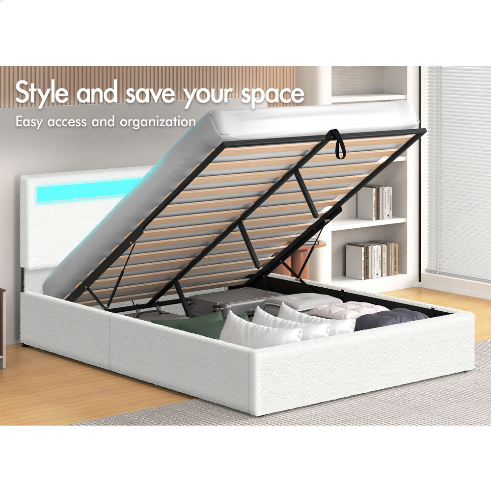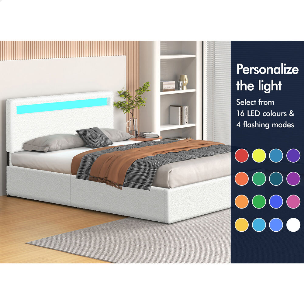ALFORDSON Bed Frame Double Size RGB LED Gas Lift Storage Base Boucle LUCHINO