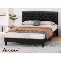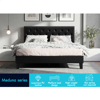 ALFORDSON Bed Frame Double Size Tufted Headboard Modern Leather Black Meduna