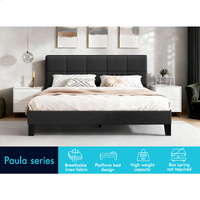 ALFORDSON Bed Frame Double Size Wooden Slats Platform Fabric Charcoal Paula
