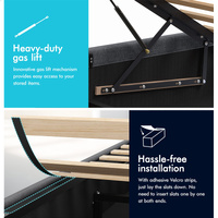 Quality counts - Constructed of durable wood slats and reinforced with exclusive X-support frame, this bed frame provides you with full sense of security. The heavy-duty gas lift mechanism allows you to effortlessly raise the mattress platform, providing easy access to the storage compartment. What's more, with adhesive Velcro strips, you can just lay the slats down, without inserting slats one by one at both end caps. Enjoy hassle-free installation!