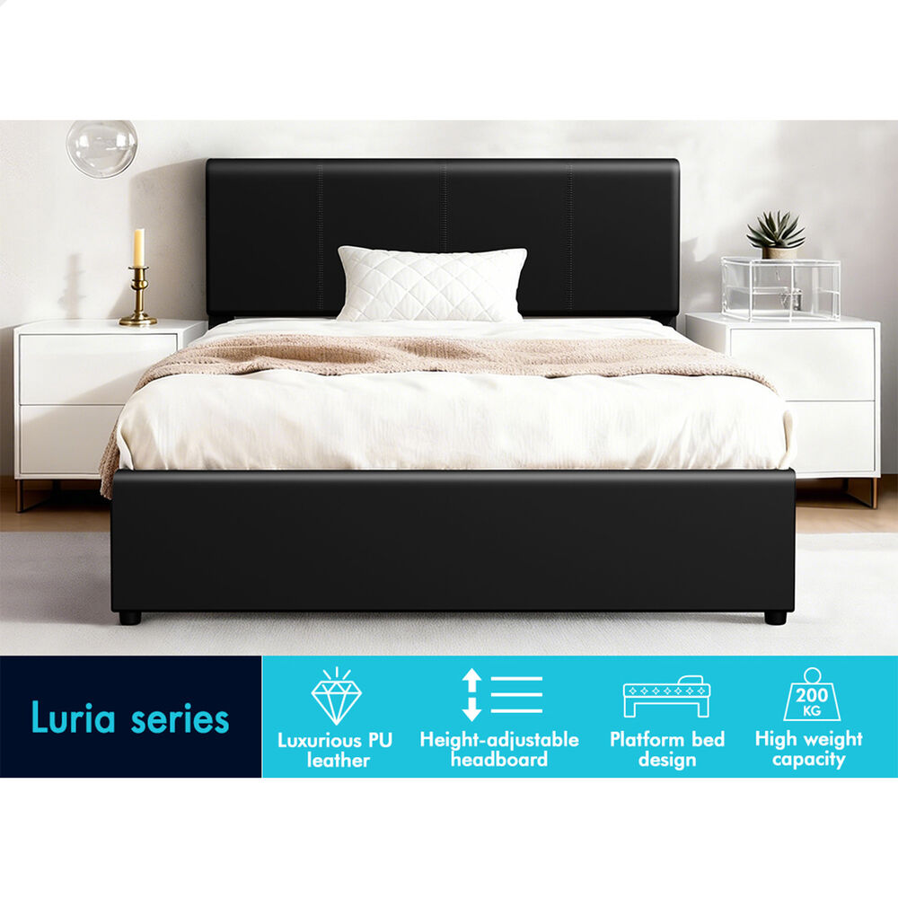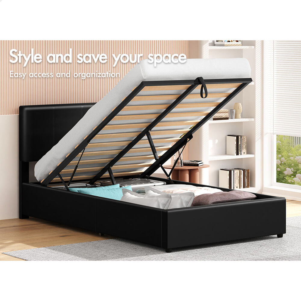 ALFORDSON Bed Frame King Single Gas Lift Storage Adjustable Headboard Black LURIA