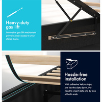 Quality counts - Constructed of durable wood slats and reinforced with exclusive X-support frame, this bed frame provides you with full sense of security. The heavy-duty gas lift mechanism allows you to effortlessly raise the mattress platform, providing easy access to the storage compartment. What's more, with adhesive Velcro strips, you can just lay the slats down, without inserting slats one by one at both end caps. Enjoy hassle-free installation!