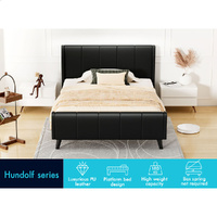 ALFORDSON Bed Frame King Single Tufted Headboard Base Black Leather HUNDOLF