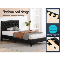 ALFORDSON Bed Frame King Single Tufted Headboard Modern Leather Black Meduna