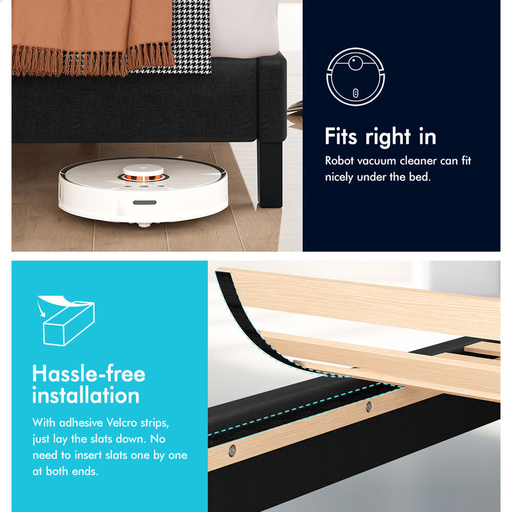 Keep it breezy - The mattress base will create a space where air can circulate freely. This helps you avoid any unwanted cold drafts and allows for better temperature regulation while you sleep on your mattress. The elevating design not only allows robot vacuum cleaner to go through under the bed, but also provides you with an additional storage space.