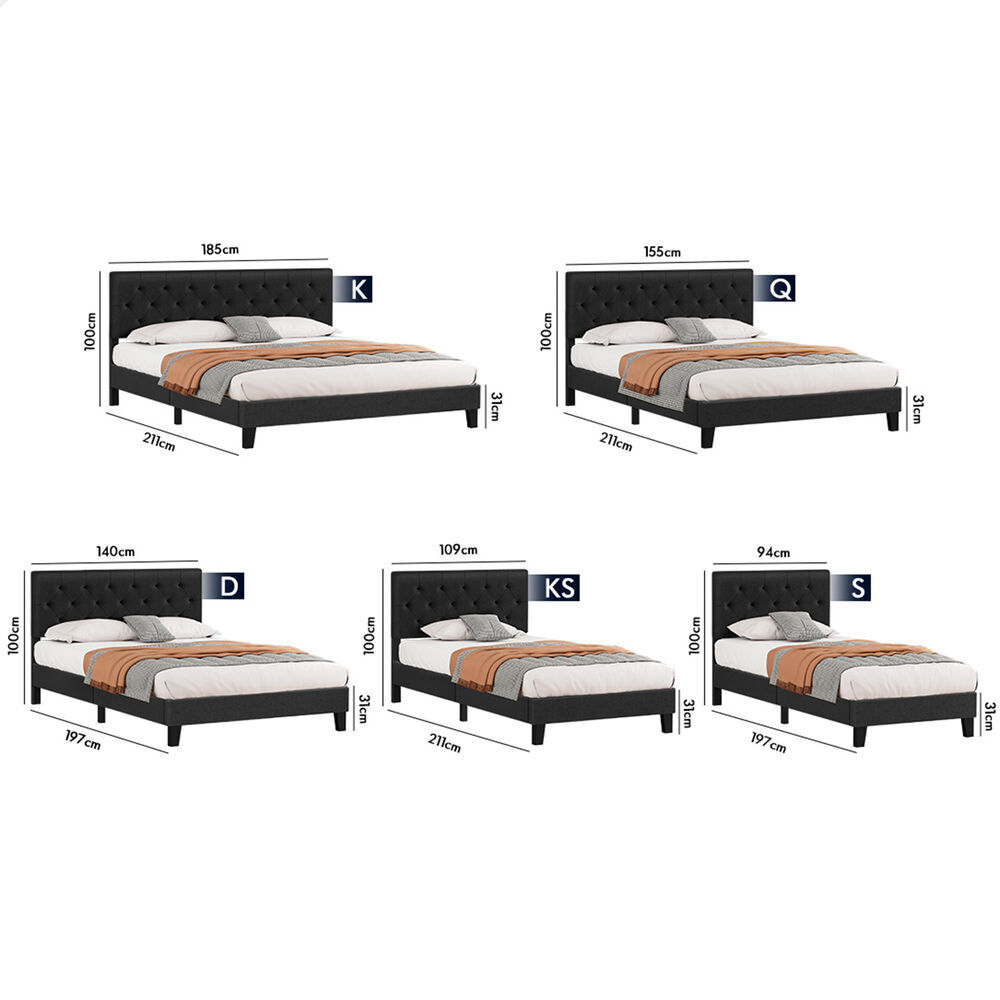 ALFORDSON Bed Frame King Single Tufted Headboard Modern Fabric Charcoal Meduna