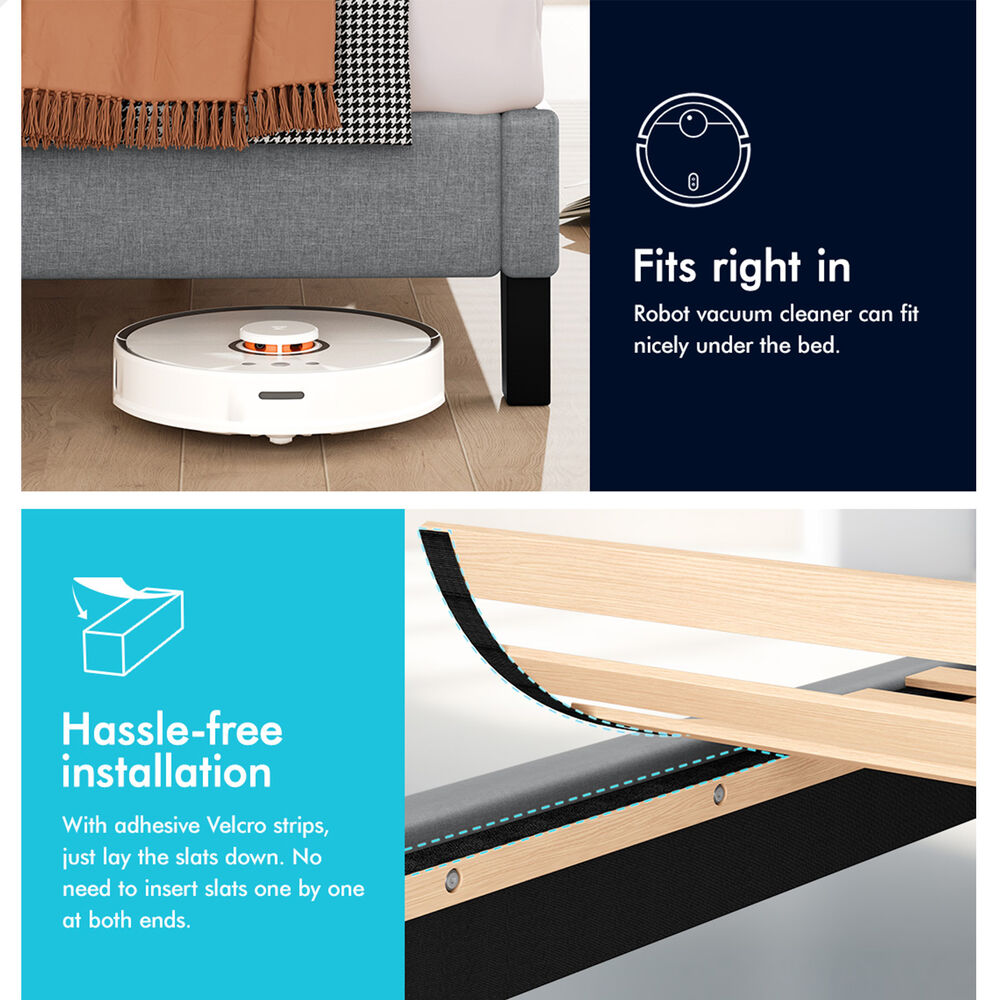 Keep it breezy - The mattress base will create a space where air can circulate freely. This helps you avoid any unwanted cold drafts and allows for better temperature regulation while you sleep on your mattress. The elevating design not only allows robot vacuum cleaner to go through under the bed, but also provides you with an additional storage space.