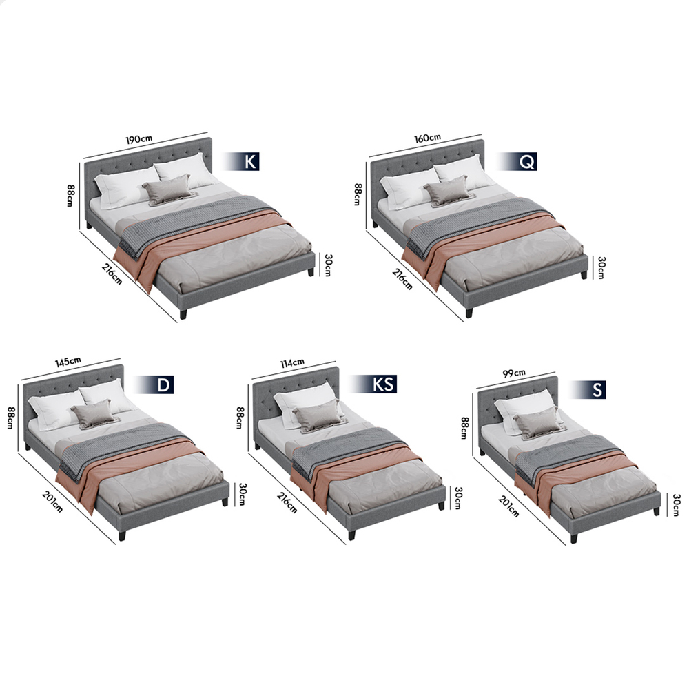 ALFORDSON Bed Frame King Single Wooden Base Platform Grey Fabric MADELYN