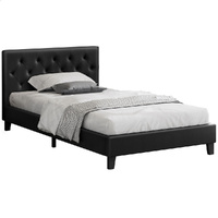 ALFORDSON Bed Frame King Single Wooden Base Platform Leather Black MADELYN