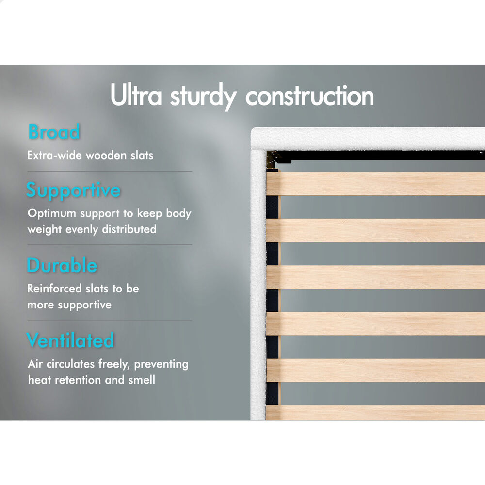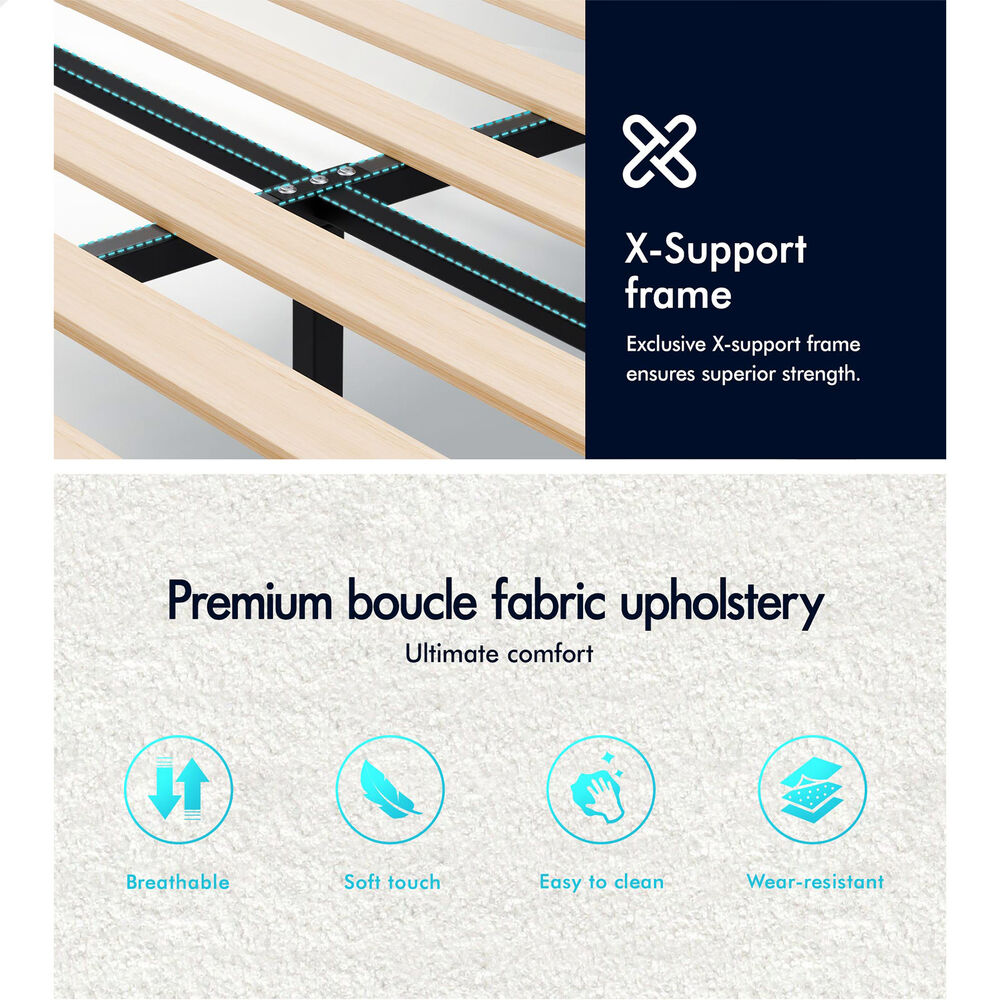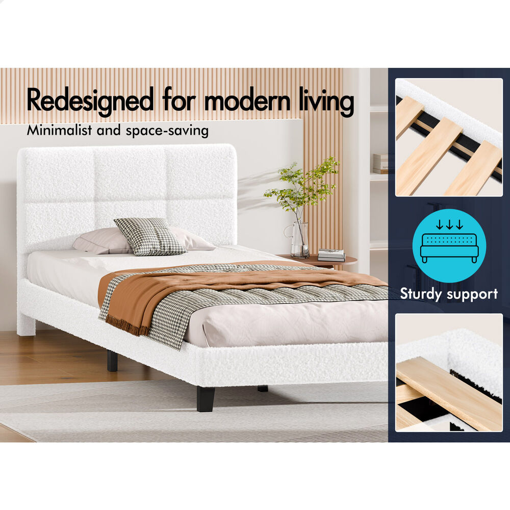 ALFORDSON Bed Frame King Single Wooden Slats Platform Boucle White Paula