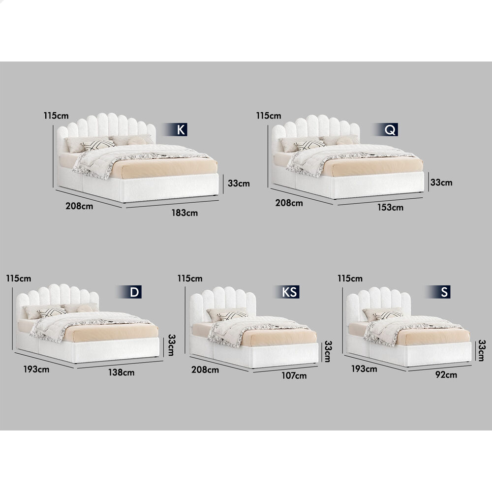 ALFORDSON Bed Frame King Size Gas Lift Storage Base Wooden Boucle MUTIS