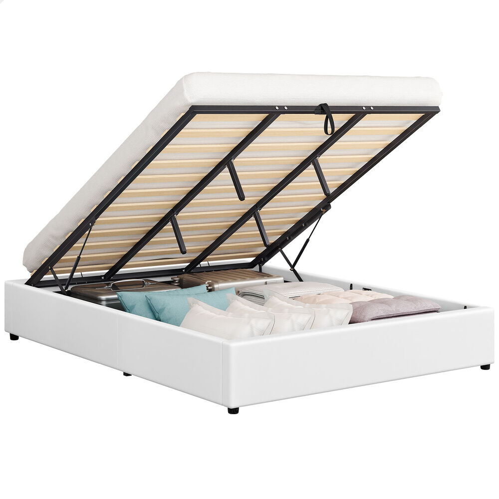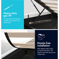 Quality counts - Constructed of durable wood slats and reinforced with exclusive X-support frame, this bed frame provides you with full sense of security. The heavy-duty gas lift mechanism allows you to effortlessly raise the mattress platform, providing easy access to the storage compartment. What's more, with adhesive Velcro strips, you can just lay the slats down, without inserting slats one by one at both end caps. Enjoy hassle-free installation!