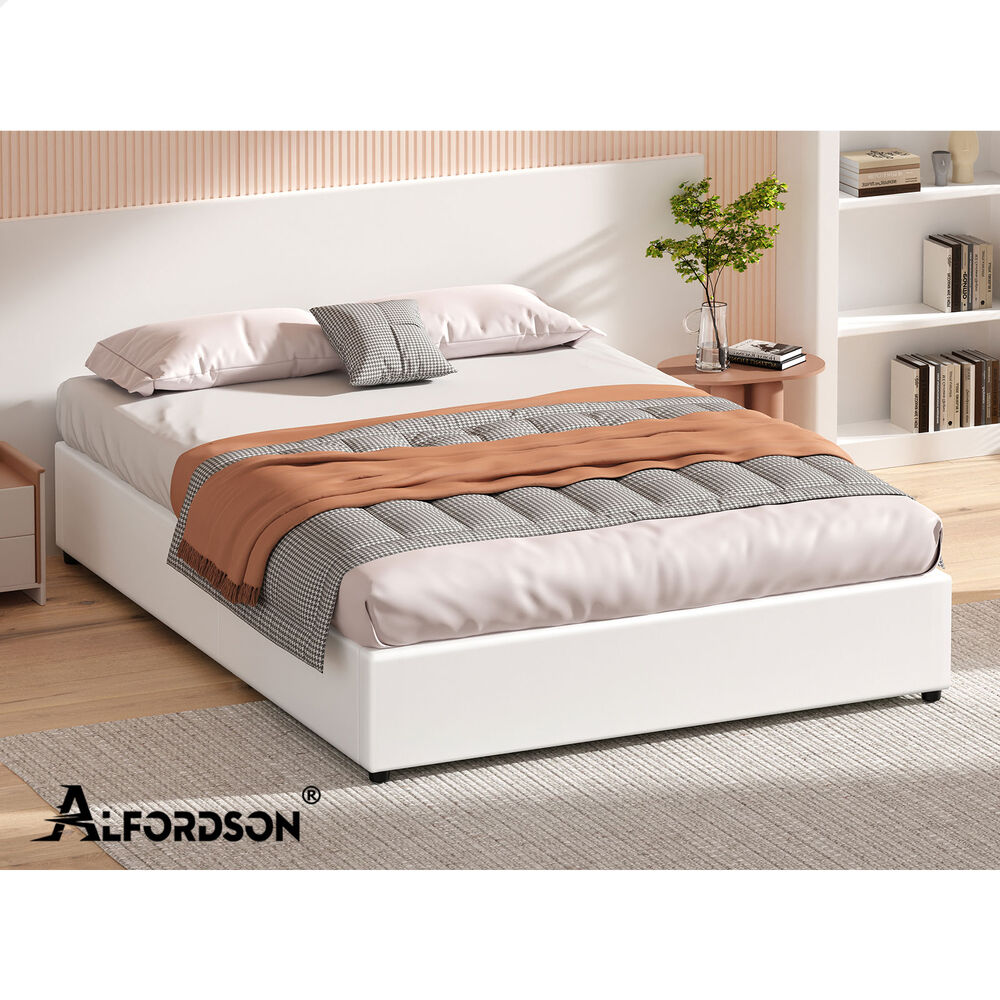 ALFORDSON Bed Frame King Size Gas Lift Storage Mattress Base White BARLOW