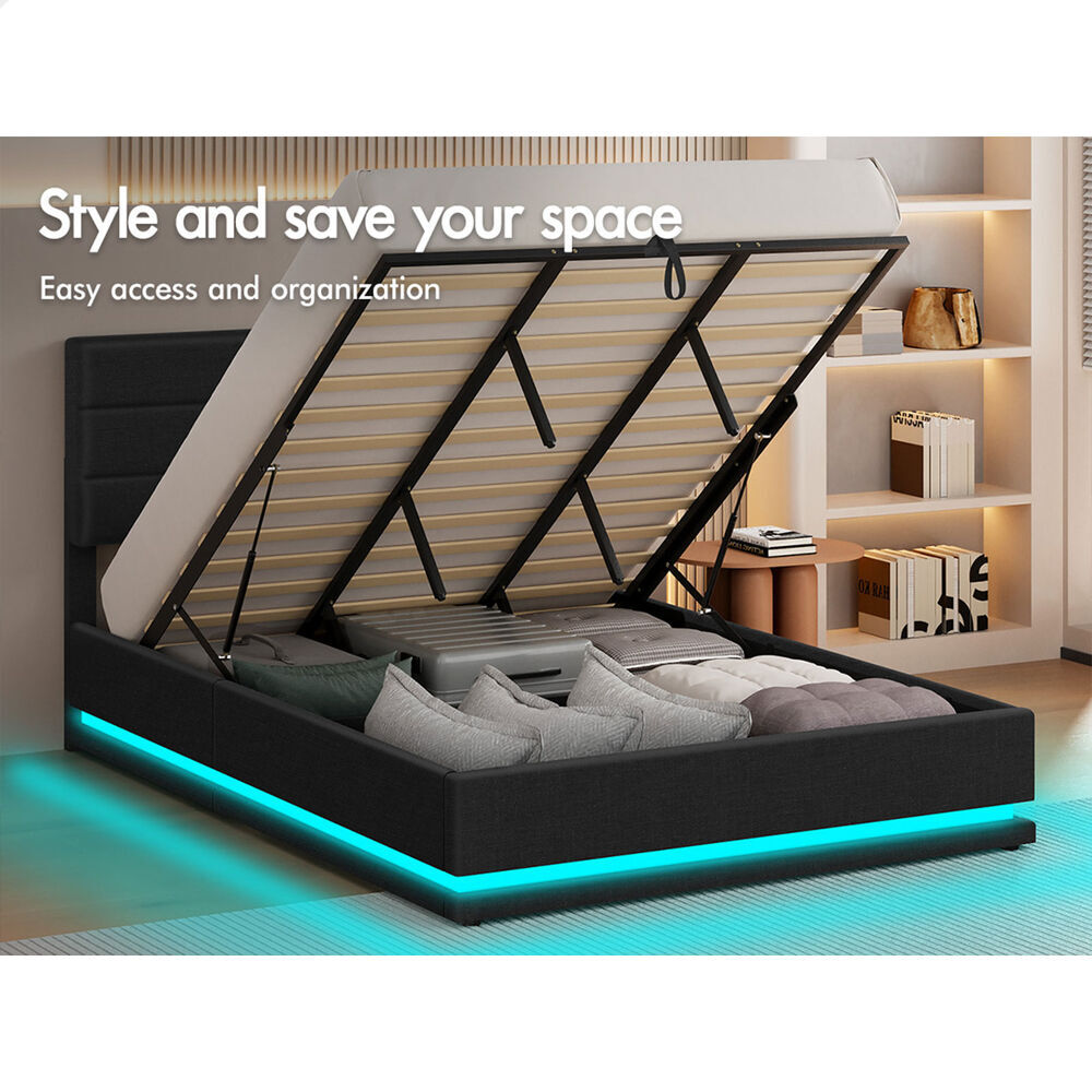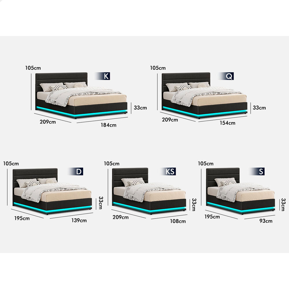 ALFORDSON Bed Frame King Size Platform RGB LED Gas Lift Storage Base Charcoal