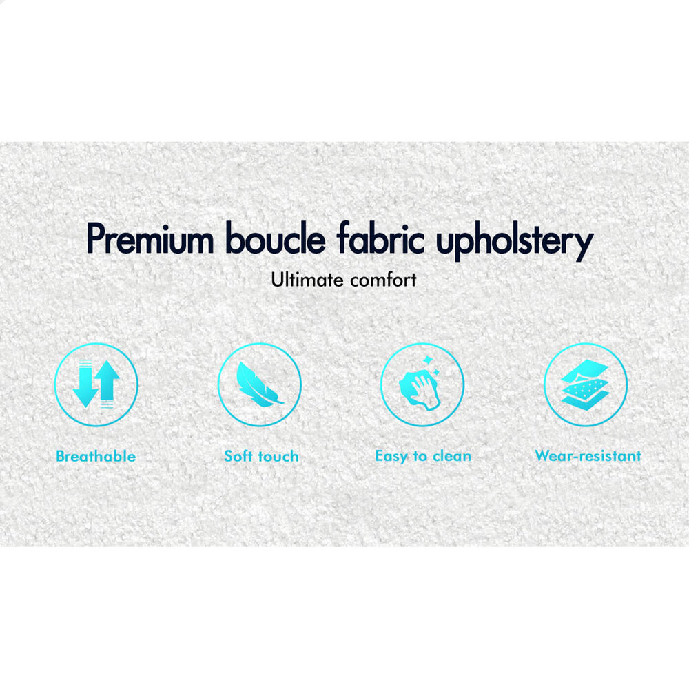 * Material: Boucle fabric, foam, wood