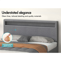 ALFORDSON Bed Frame King Size RGB LED Gas Lift Storage Base Fabric Grey LUCHINO