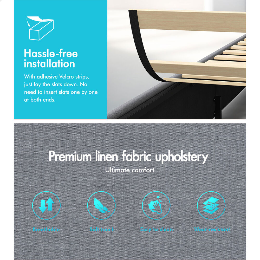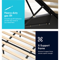 Quality counts - Constructed of durable wood slats and reinforced with exclusive dual X-support frame, this bed frame provides you with full sense of security. The heavy-duty gas lift mechanism allows you to effortlessly raise the mattress platform, providing easy access to the storage compartment. What's more, with adhesive Velcro strips, you can just lay the slats down, without inserting slats one by one at both end caps. Enjoy hassle-free installation!