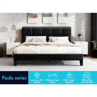 ALFORDSON Bed Frame King Size Wooden Slats Platform Leather Black Paula