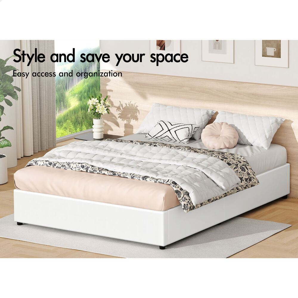 ALFORDSON Bed Frame Queen Size Gas Lift Storage Mattress Base White BARLOW