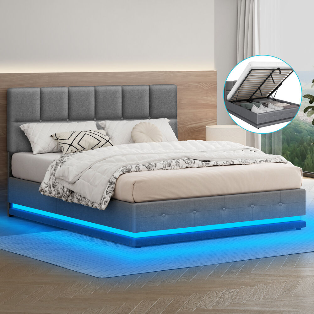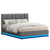 ALFORDSON Bed Frame Queen Size Platform RGB LED Gas Lift Base Storage Grey
