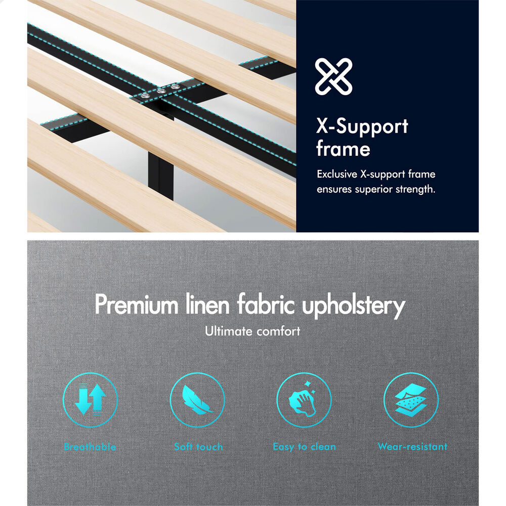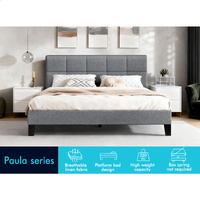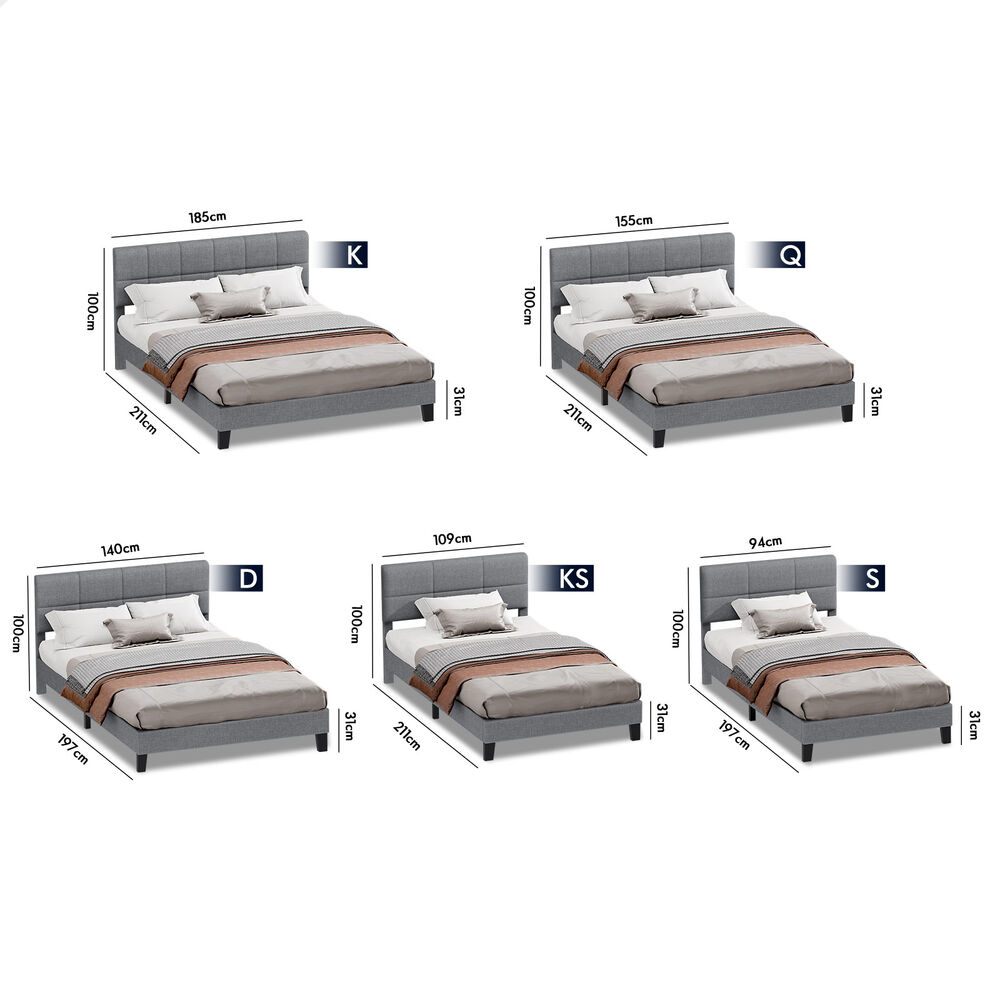 ALFORDSON Bed Frame Queen Size Wooden Slats Platform Fabric Grey Paula
